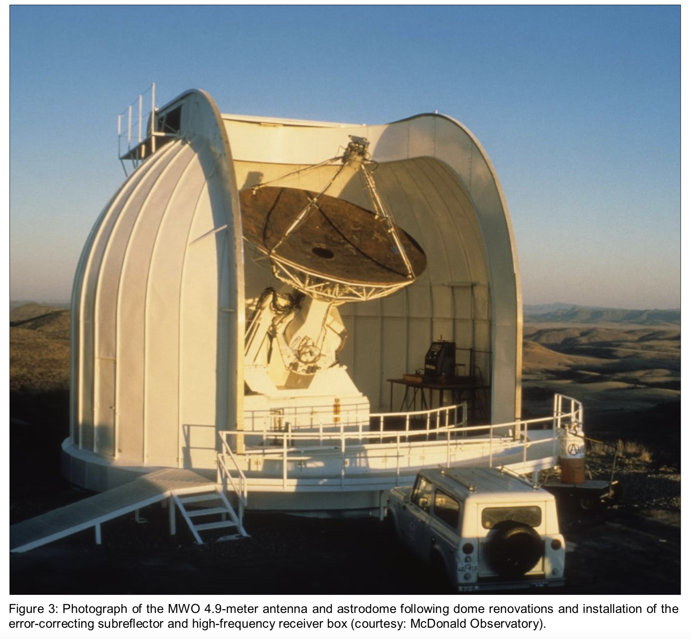 Dr. Straiton was also responsible for the design and construction of a 16-foot parabolic antenna with reflector surface tolerances so small that it could operate effectively as a radio telescope at millimeter wave frequencies. At the time it was constructed, this antenna had the largest ratio of aperture diameter to surface tolerance of any radio telescope in the world. In addition to being used to map the radiation profiles of the sun and planets in our solar system, the telescope was used at the McDonald Observatory site by radio astronomers from all over the world in the discovery of many new millimeter radio wave sources throughout the universe.