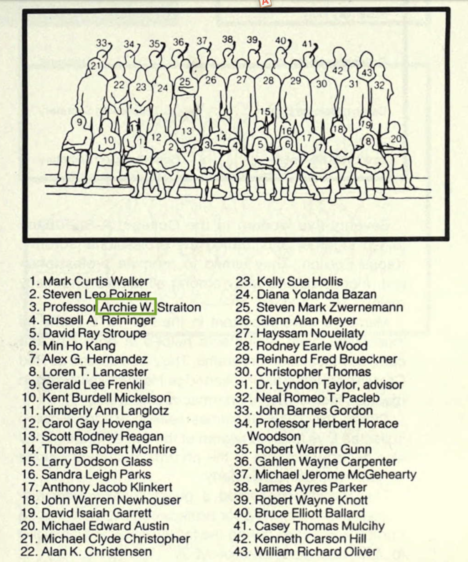 Dr. Straiton was a humble and caring man. He cared for his students, his faculty colleagues, and his family. He was always calm and seemed never outwardly bothered by any situation. He never raised his voice or said a bad word about anyone. He gave with his whole heart, and he did not expect anything in return; he was the perfect example of a kind gentleman. He will be greatly missed. At the time of his death, he was survived by his two daughters, Janelle and Carolyn, and their husbands, six grandchildren, and ten great-grandchildren.