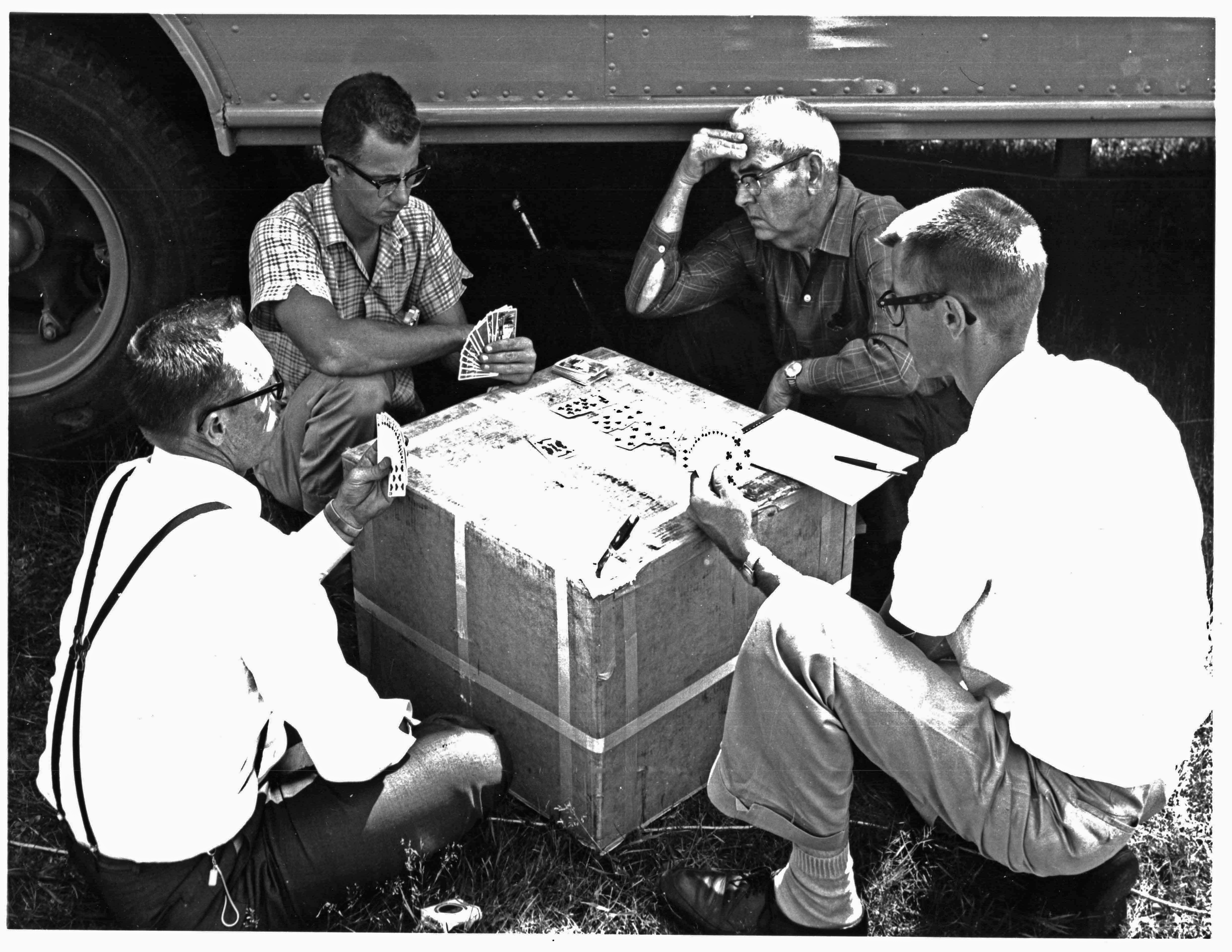 Renaming of Off-Campus Research Center to Balcones Research Center-May, 1953 L To R: Front Row, J. Neils Thompson, Director, ?, Logan Wilson, UT President, Collier Read Granberry, Prof. Engineering, ?, Arthur E. Lockenvitz, Prof. of Physics, William A. Cunningham, Prof. Chemical Engineering, ?, Archie W. Straiton, Prof. of EE, Byron E. Short, Prof. of Mechanical Engineering Very Back Row: L to R, ?, ?, Emmett Hudspeth, Professor of Physics, Elias Howard Sellards, Prof of Geology, ?John Tipton Lonsdale, Director of the Texas Bureau of Economic Geology and Professor of Geology. |