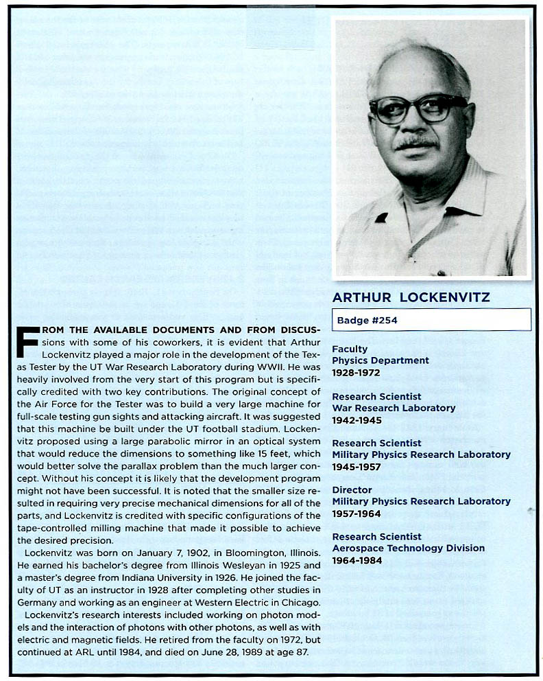 Arthur E. Lockenvitz entry from A History of Applied Research Laboratories, Vol. 1, 1945-1980, by Chester McKinney and Clark Penrod . |