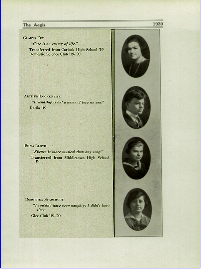 Arthur E. Lockenvitz, Bloomington High School, The Aegis yearbook, 1920. |