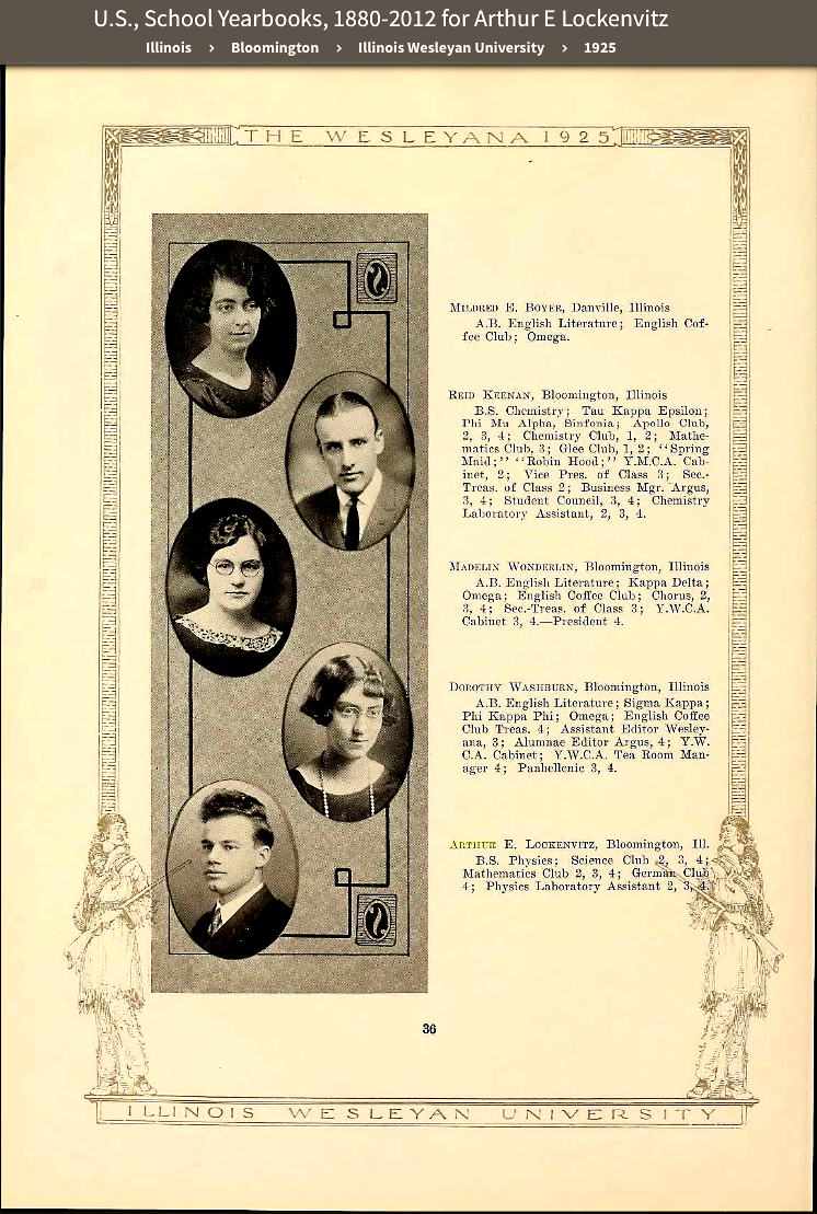 Arthur Ernst Lockenvitz, Illinois Wesleyan Univerisity, 1925, Lockenvitz at bottom of column. |