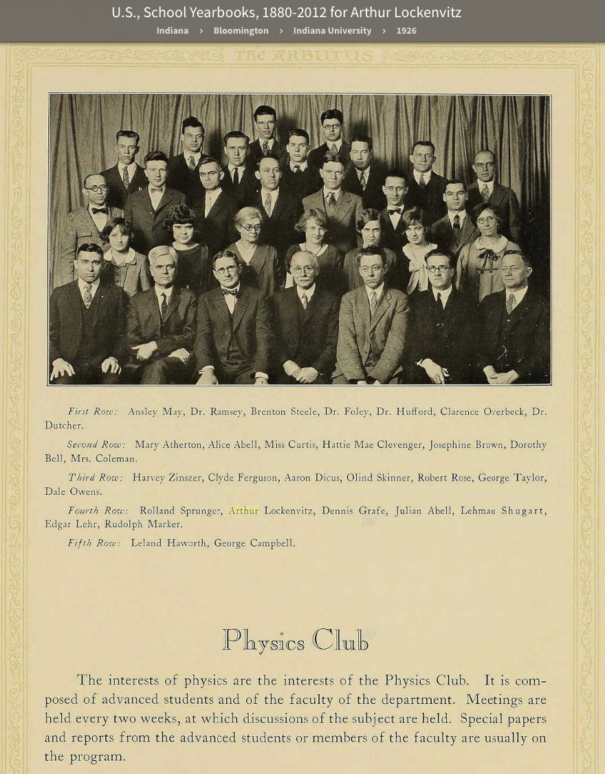Arthur E. Lockenvitz, Indiana University, 1926, Physics Club |
