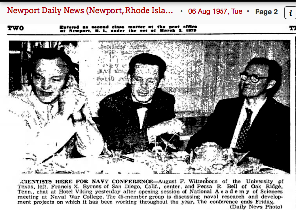 August Ferdinand Wittenborn Jr. was born Ausgust 11, 1923 to August an Hedwig Altwein Wittenborn in New Braunfels, Texas. His father was a farmer. He enlisted in the Army May 23, 1944 an was released January 10, 1946. He attended the University of Texas at Austin, playing in the Longhorn Band.