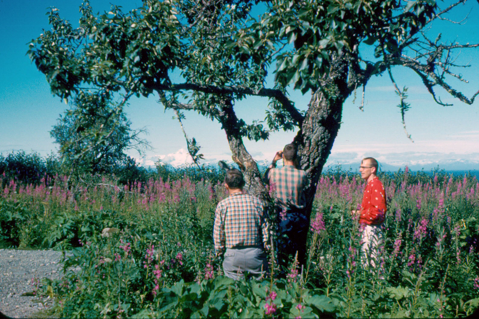 Paul, Roger and Bruce, Looking at Redoubt, 8/7/1960 |
