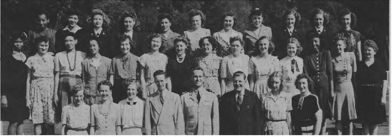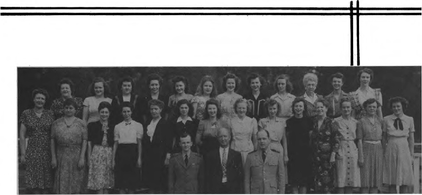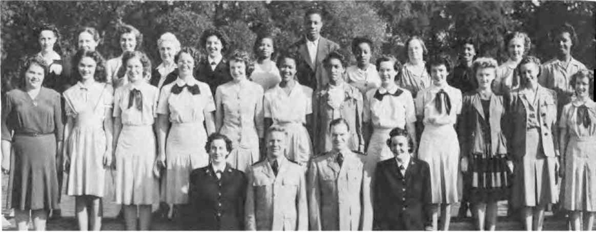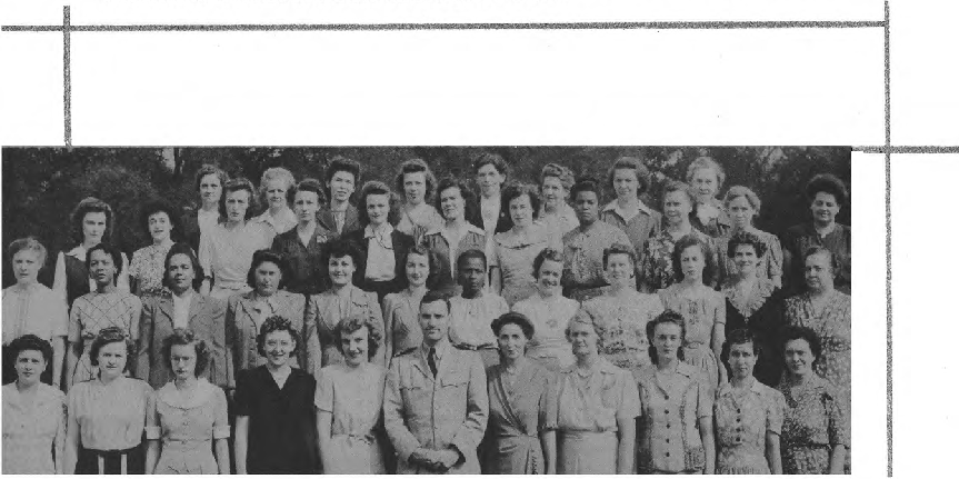 Front Row (L. to R)-1. J, Mahan, R. Jennings, E. J. Connolly, H. R. Pennifi11, Sarah V, Higgs, Lt. E. Stanton, E. Erkkila, M. L. Moore, E. McDorman, Ens. J. C. Lingebach, M. C. Kilmer. Second Row (L to R.)-A. S. Cohen, E. M. Turner, N.C. Jetty, M. Downer, W. F. Banks, M. E. Lewis, D. B. Jordan, R. McRae, I. M. Brent, D. L. Brooks, G. E. Willis, O. M. Easterling. Third Row (L to R)~ Frances E. Hunter, R. Shaeffer, H. H. O'Krogly, A. L. Rice, I. P. Sobolewski, B. M. Ferguson, M. E. Ratliff, A. M. McCall, B. L. Tims, B. T. Jenkins, M. E. Ford.