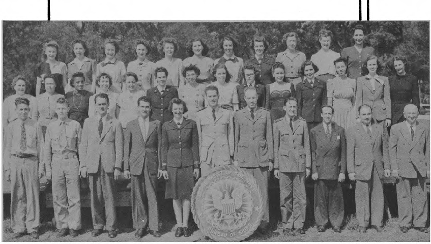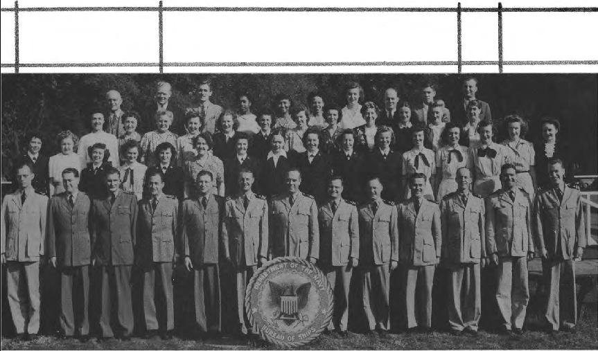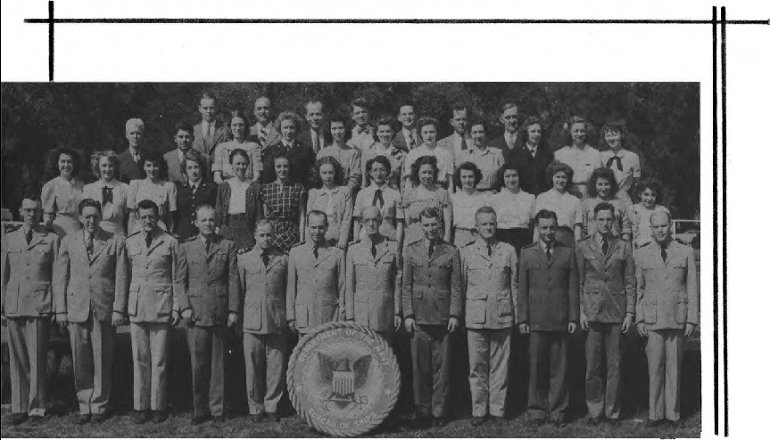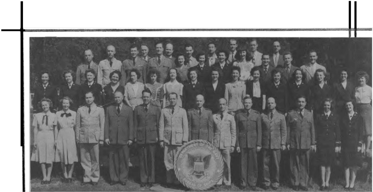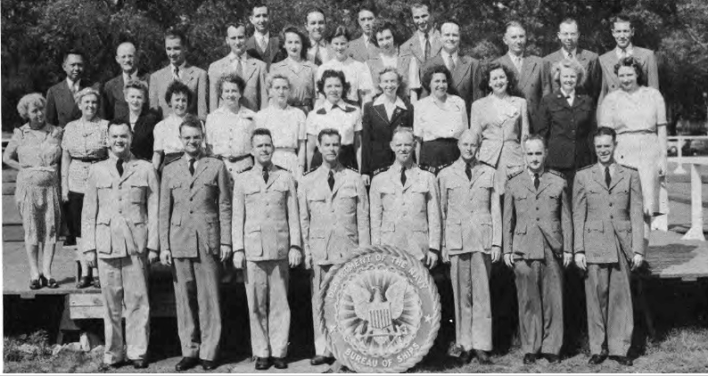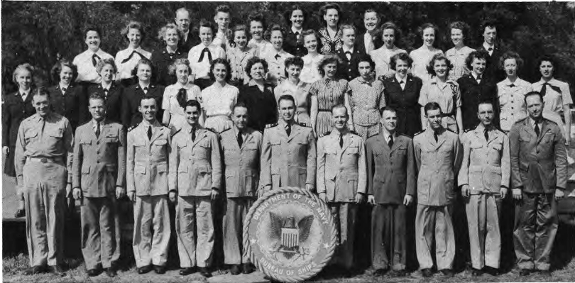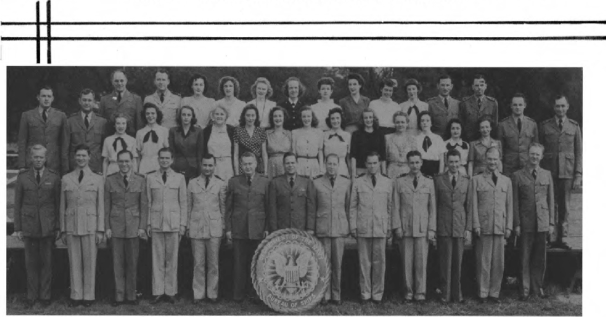 This Yearbook was made available by Scott Erlandson, whose father, Paul Erlandson, worked for the Bureau during WWII and later became an outstanding industrial and academic physicist, obtaining many patents. The book was kindly scanned and the captions OCRed by the University of Texas Library to make names searchable. Special thanks to Colleen Lyon and Molly White for their help. A significant amount of work, however, is required to correct the OCR results, a task that I received the capable assistance of Lois Mallory. The exact yearbook can be downloaded in a searchable pdf format at the University of Texas link listed below. (ocr corrections are not in that version.) This version here, which contains corrections, is searchable in your browser. (Command+F on a Mac and Control+F on PC). As time permits I am also enhancing the photos.