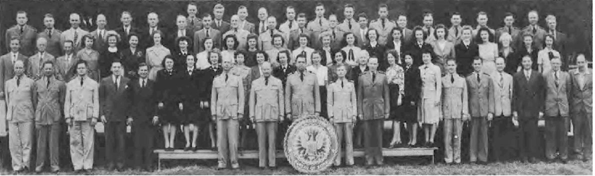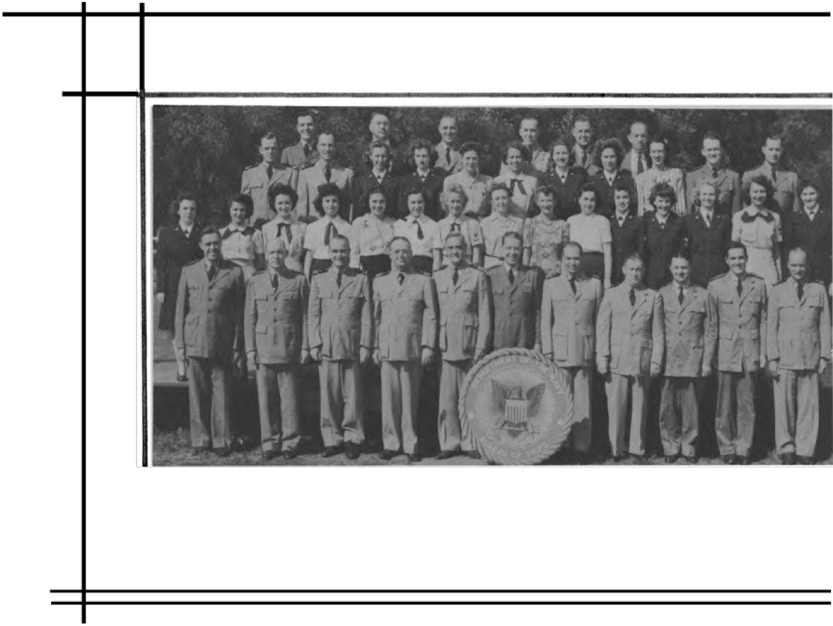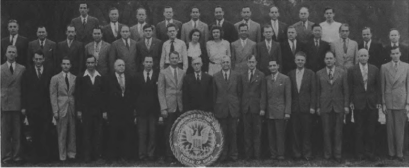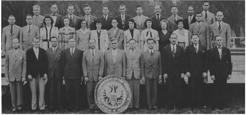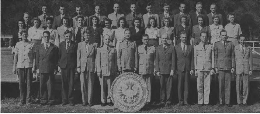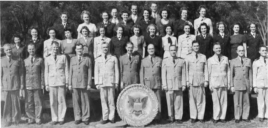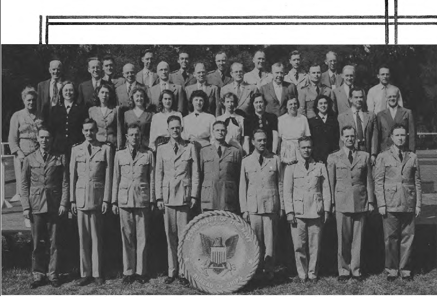 This Yearbook was made available by Scott Erlandson, whose father, Paul Erlandson, worked for the Bureau during WWII and later became an outstanding industrial and academic physicist, obtaining many patents. The book was kindly scanned and the captions OCRed by the University of Texas Library to make names searchable. Special thanks to Colleen Lyon and Molly White for their help. A significant amount of work, however, is required to correct the OCR results, a task that I received the capable assistance of Lois Mallory. The exact yearbook can be downloaded in a searchable pdf format at the University of Texas link listed below. (ocr corrections are not in that version.) This version here, which contains corrections, is searchable in your browser. (Command+F on a Mac and Control+F on PC). As time permits I am also enhancing the photos.