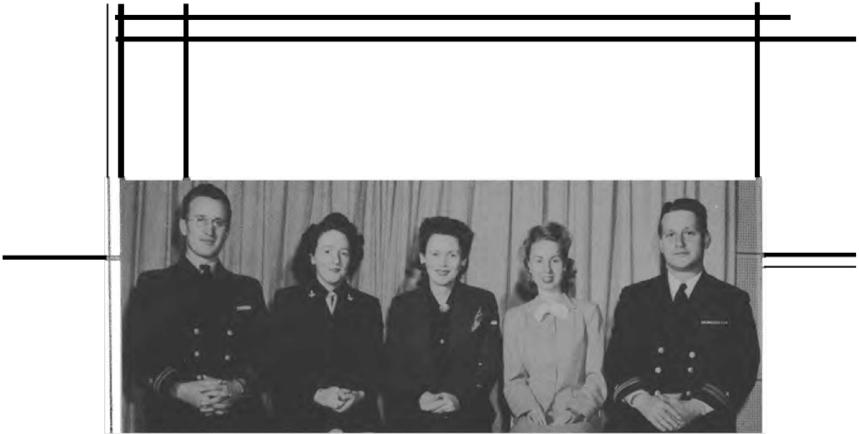 Front Row (L. to R.)—L. Thompson, P. Vallaincourt, A. Vida, H. Lee, Lt. M. Zoll, Lt. M. Madson, Lt. Cdr. E. K. Dougherty, Lt. Cdr. J. F. Whitehead, Lt. R. A. Wallace, A. Trout, M. Frum, N. Thompson, E. H. Bowie. Second Row (L. to R.)—R. Friedman, K. Payne, P. Silcox, C.,Brasseau, E. McGuire, K. Casey, M. Bernhardt, I. Nally, B. McFarlane, B. Breslaw, E. Feldman, B. Hart, L. Bennett, P. Ashbridge. Third Row (L. to R.)—R. Gotto, B. Draper, W Kendall, R. Sartain, K. McKaig, D. McKimmey, M. Jacobs, J. Lewis, R. Patten, E. Cohen, E. McMullen, R. Moyer. Fourth Row (L. to R.)—R. Hochstein, K. Pullman, C. Dunn, K. Veit, E. Walsh, D. Lilley, S. Goodman, B. Reynolds, R. Denson, D. Denekas, L. Rittenhouse.