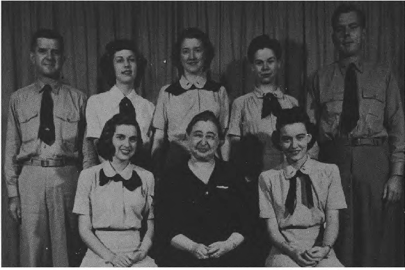Front Row (L. to R.)-S. Straus, P. Meyer, M. Pringle, A. Eikelberg, A. Wagner, R. Newman, A. Kleiter, L. Mitchell, J. Senger, S. Rye, W. Brundage, B. Wamsley, O. Dye, A. Taylor, L. Neuman. Second Row (L. to R.)-F. Ramirez, M. Wise, E. Richmond, M. Statti, M. Ransanici, R. Robinson, V. Welch, F. Macierowski, M. Rowan, M. Perkins, L. Phillips, B. Simms, D. Maloney, H. Pokomo, D. Gaines. Third Row (L. to R.)-W. Tyler, B. Mack, H. Stacey, M. Hunt, D. Rand, V. Catts, H. Pfister, A. Ptdgeon, E. Tasman, I. Pfister, N Prudhomme, B. L. Smith, C. Schonhoff, J. Quinley.
