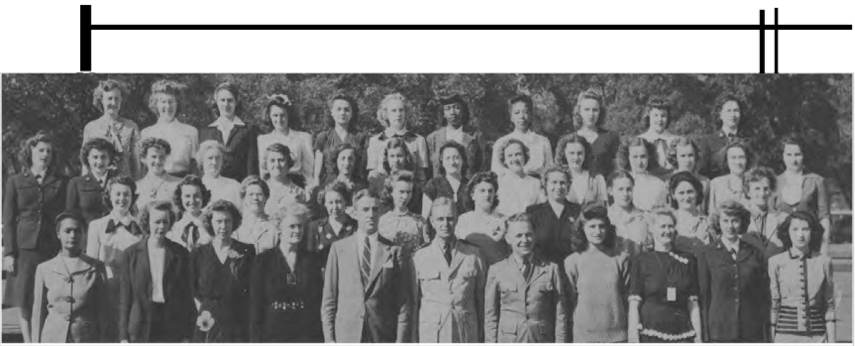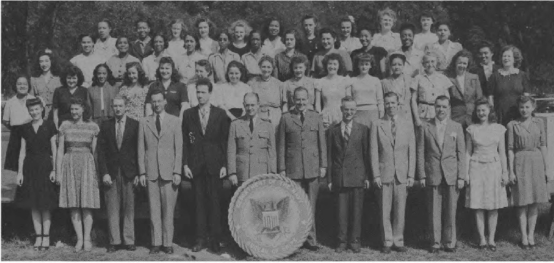 One remarkable aspect of the yearbook, which prompted me to make it available in searchable form, was the extraordinary number of African-American employees pictured. All group photos included identifications. Rarely have I seen this in other documents. It is my hope that families of these contributors to the war effort will find their parents, grandparents, relatives and friends. If you find this useful, I would very much appreciate your letting me know at the email below. In most cases only the given name initials are included, and I have discovered errors in their order in some entries. I would very much like to have full first names. The first names will greatly improve the ability to search the document on the web. I will add them as they come available. I am still seeking a personnel directory. If anyone is aware of one please contact me. The U.S. Census records can be of some use, but very time consuming. If you would like to help with this effort, please contact me.