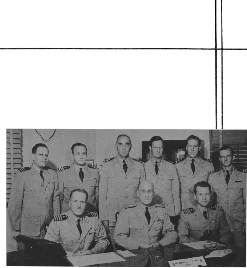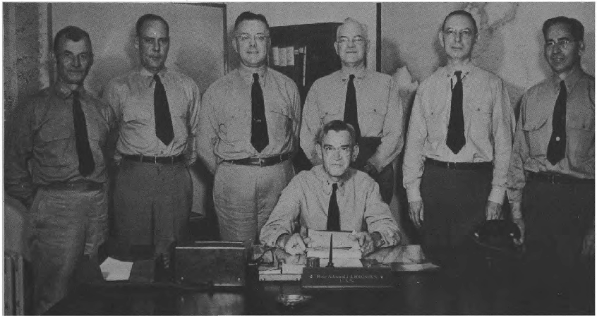 Seated (L. to R.)—Capt. N. W. Gokey, R. Adm. F. J. Wille, Capt. E. M. Ragsdale. Standing (L. to R.)—Cdr. A. L. R. Rosenstein, Cdr. R. F. Smith, Capt. H. R. Gary, Cdr. E. L. Crabbe, Lt. Cdr. E. K. Dougherty, Lt. W. P. Curtiss.