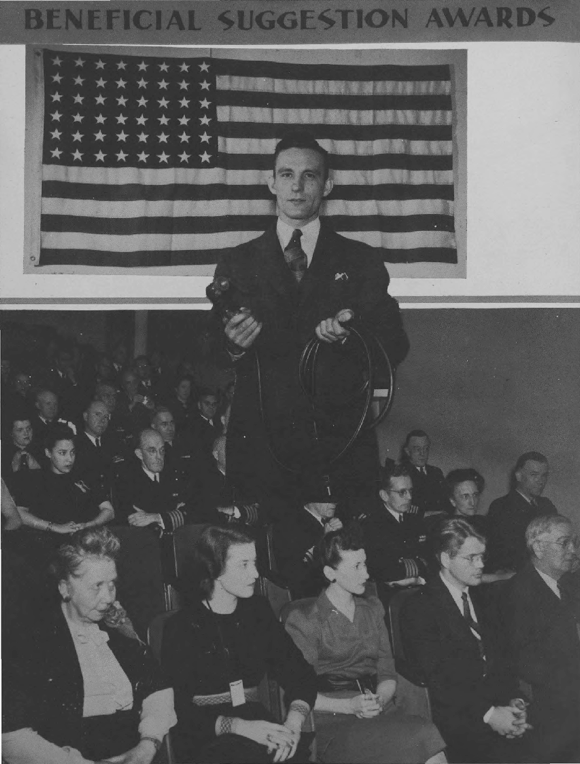 Sales and distribution by Employee Relations Section, C. E. Auvil, Head of Section; and by Incentives Unit, Code 268b, Elmer Seger, Head of Unit. Mail campaign conducted through the cooperation of Capt. R. F. Yager, USN, Head, Naval Personnel Branch, and Mr. L. E. James, Head Civilian Personnel Branch, and their staffs.