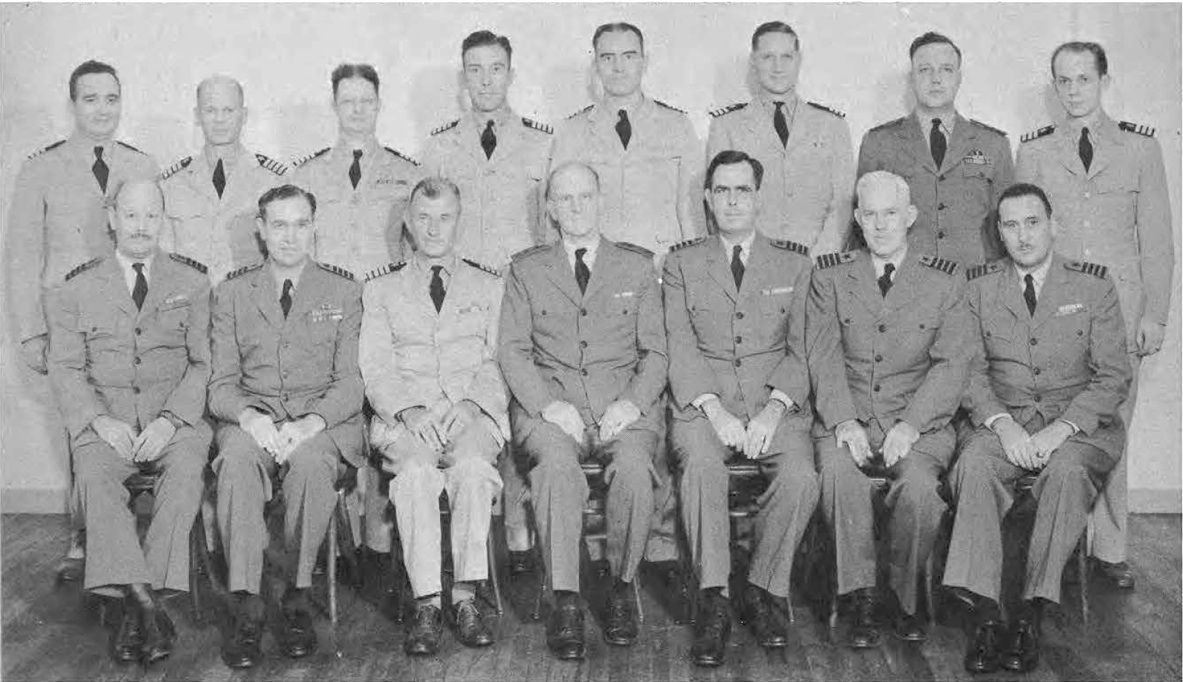 Front Row (L. to R.)—Lt. Cdr. W. P. Stewart, L. A. A. Slodden, Cdr. E. L. Crabbe, Capt. N. W. Gokey, R. Adm. F. J. Wille, Capt. H. R. Gary, Lt. A. B. Bower, Lt. G. F. Kasten. Second Row (L. to R.)—Lt. E. Randolph Jr., A. L. Welty, F. L. Ohman, E. L. Landry, E. Fribush, D. Allen, B. Shields, M. L. Simpson, M. R. Hanscom, Lt. J. Beuscher.