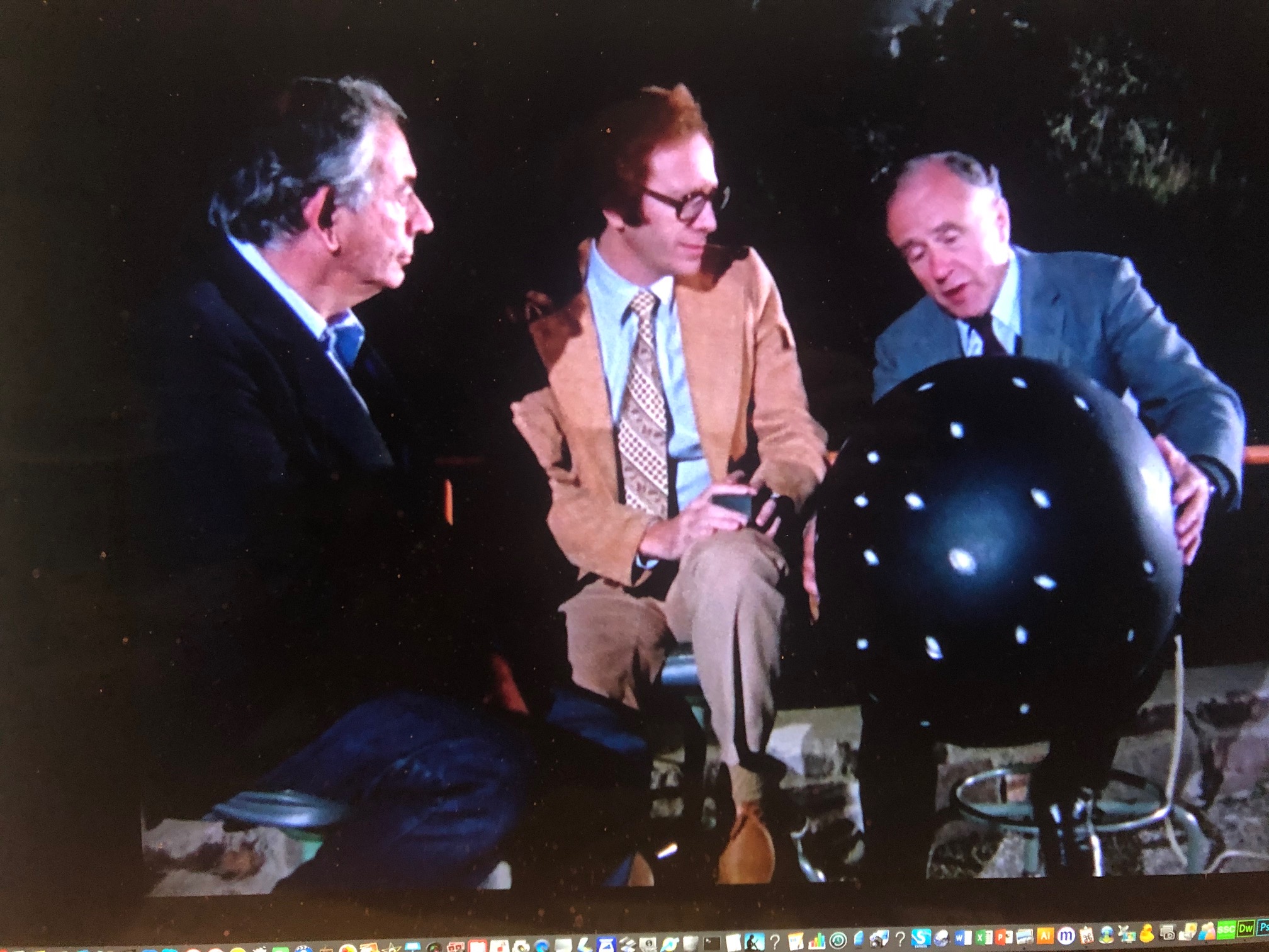In 1979, a movie entitled "Einstein's Universe" was filmed at the McDonald Observatory at Fort Davis, TX. Along with the principal character, Peter Ustinov and film writer, Nigel Calder, were scientists who had been in the Center for Relativity: John A. Wheeler, Dennis Sciama and Roger Penrose. The DVD is available for purchases and at the time of this writing, 2020, was availble for viewing on Amazon Prime Video. A few frames from the movie are below: Left to Right: John Wheeler & Peter Ustinov; John Wheeler, Peter Ustinov, Dennis Sciama; Roger Penrose; Dennis Sciama, Nigel Calder, John Wheeler. The movie has nice footage of the McDonald Observatory.