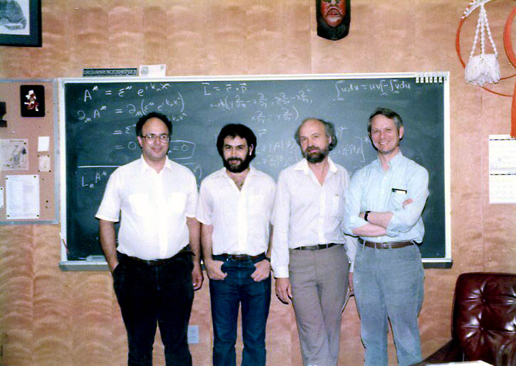 Elaine Tsiang, Lane Hughston, Steve Christensen, Larry Smarr Trieste, Summer 1971 |