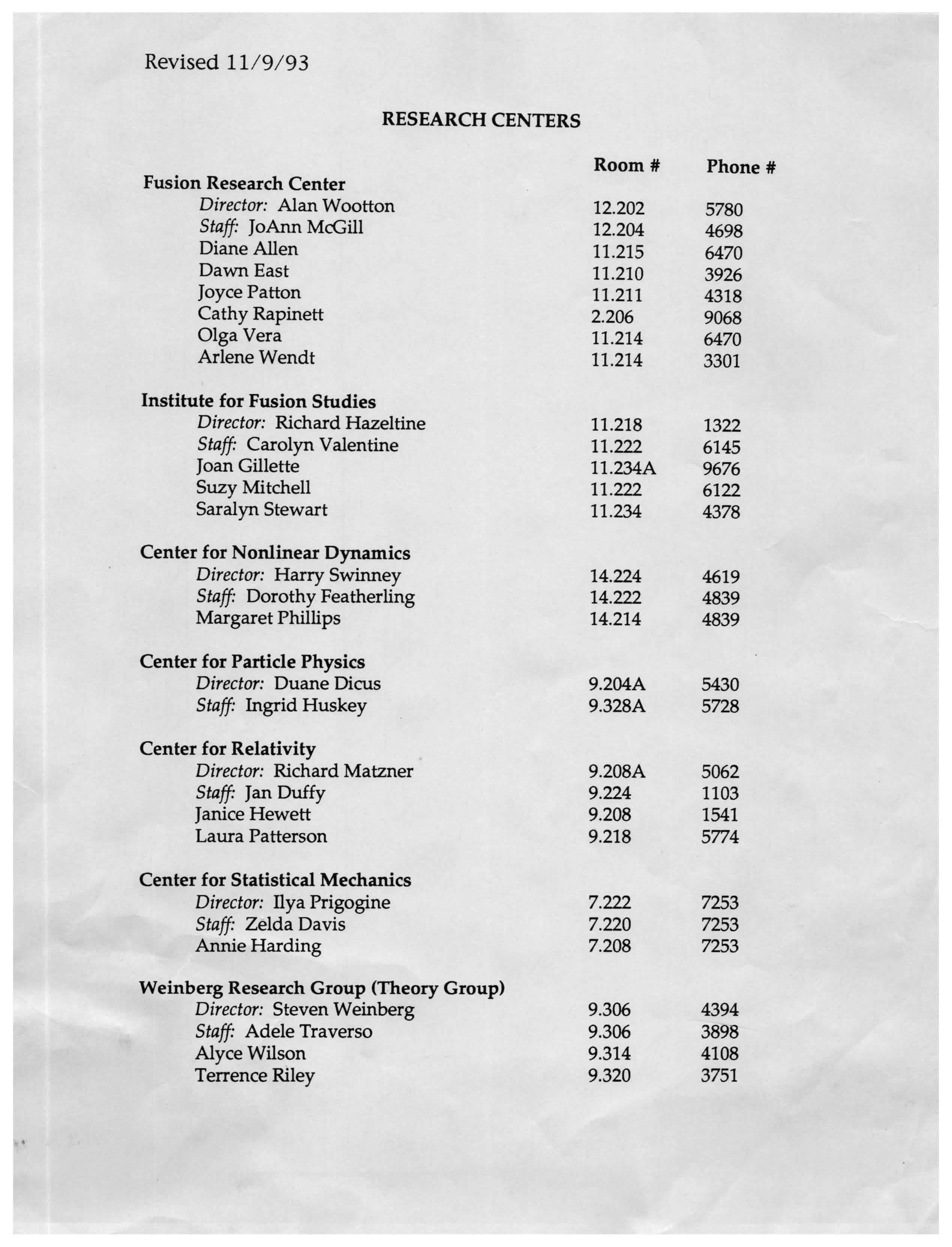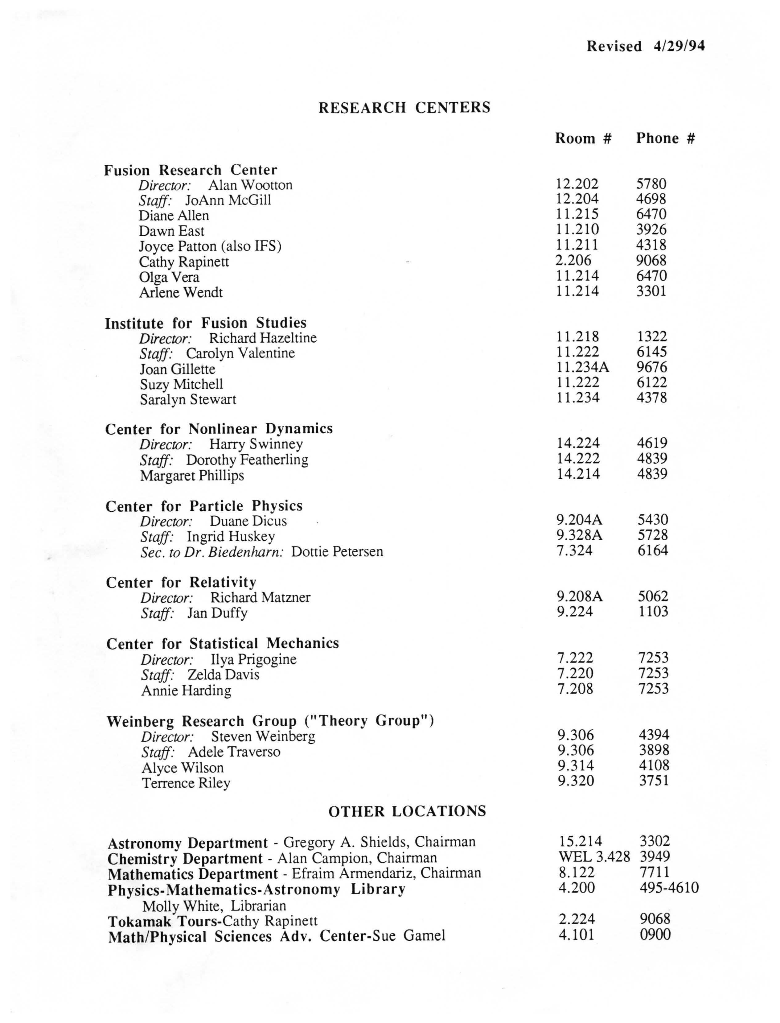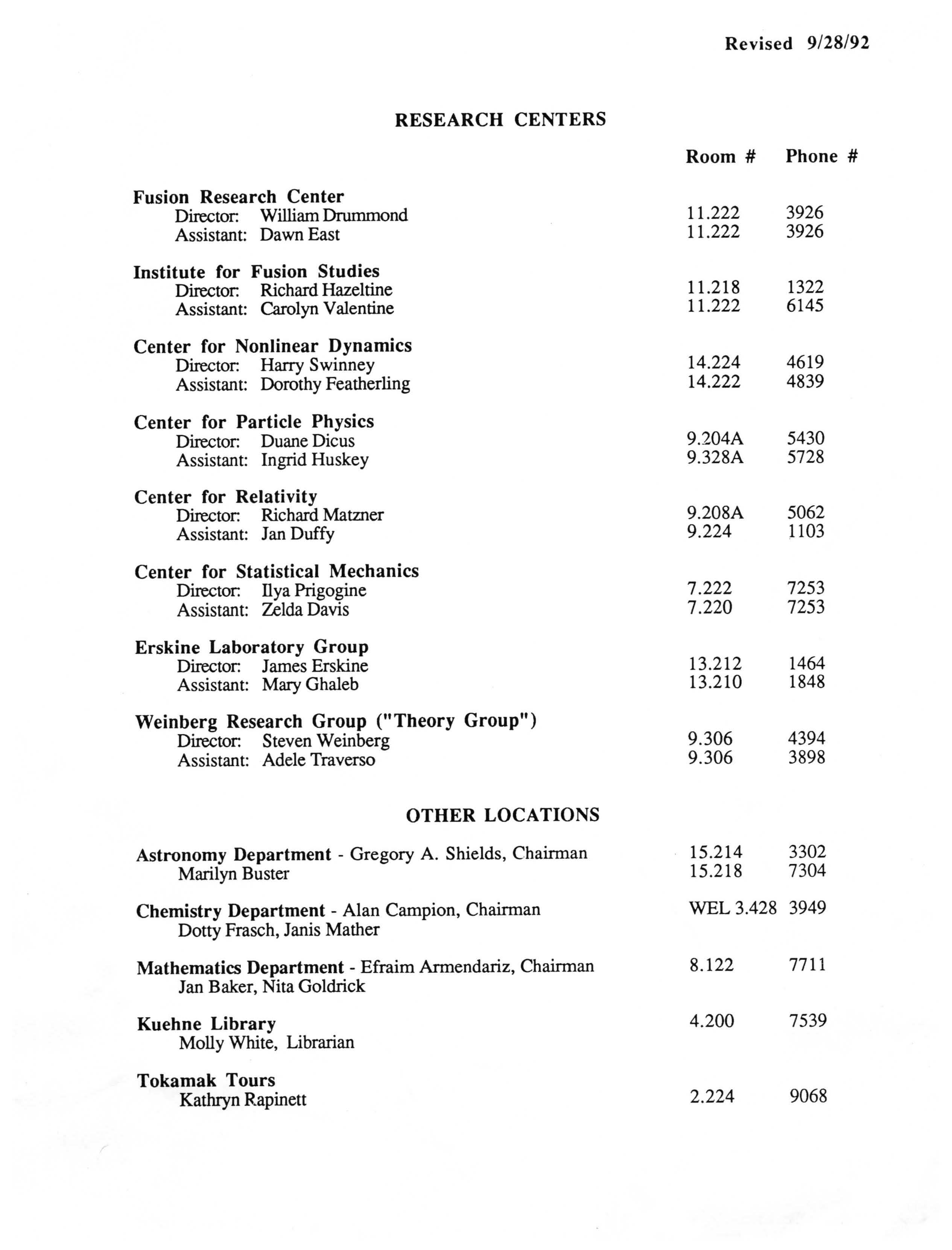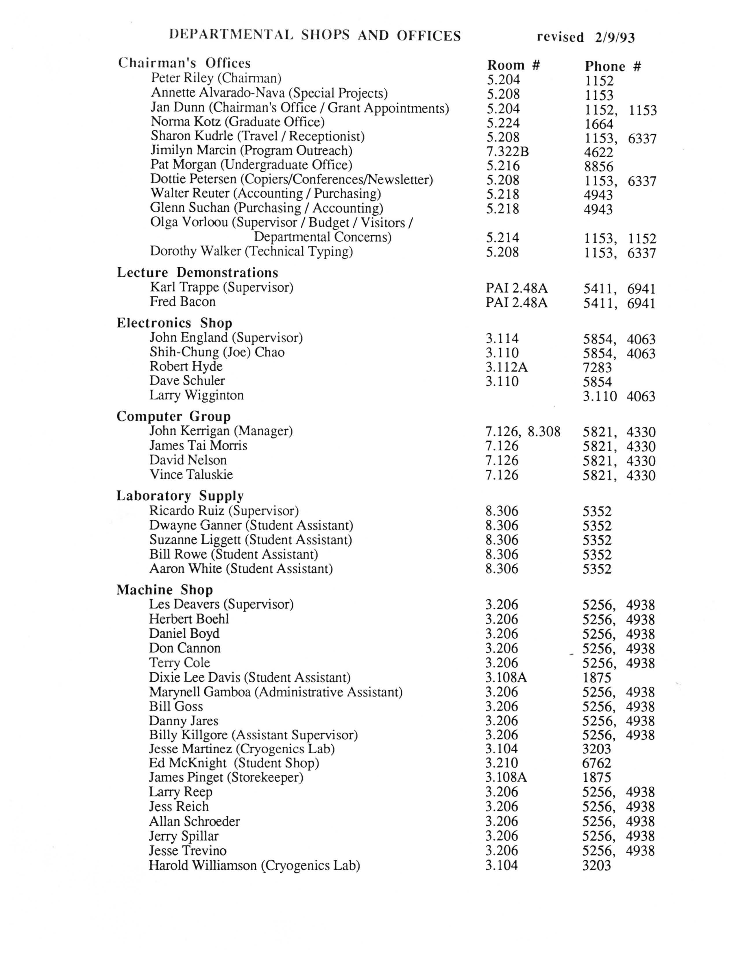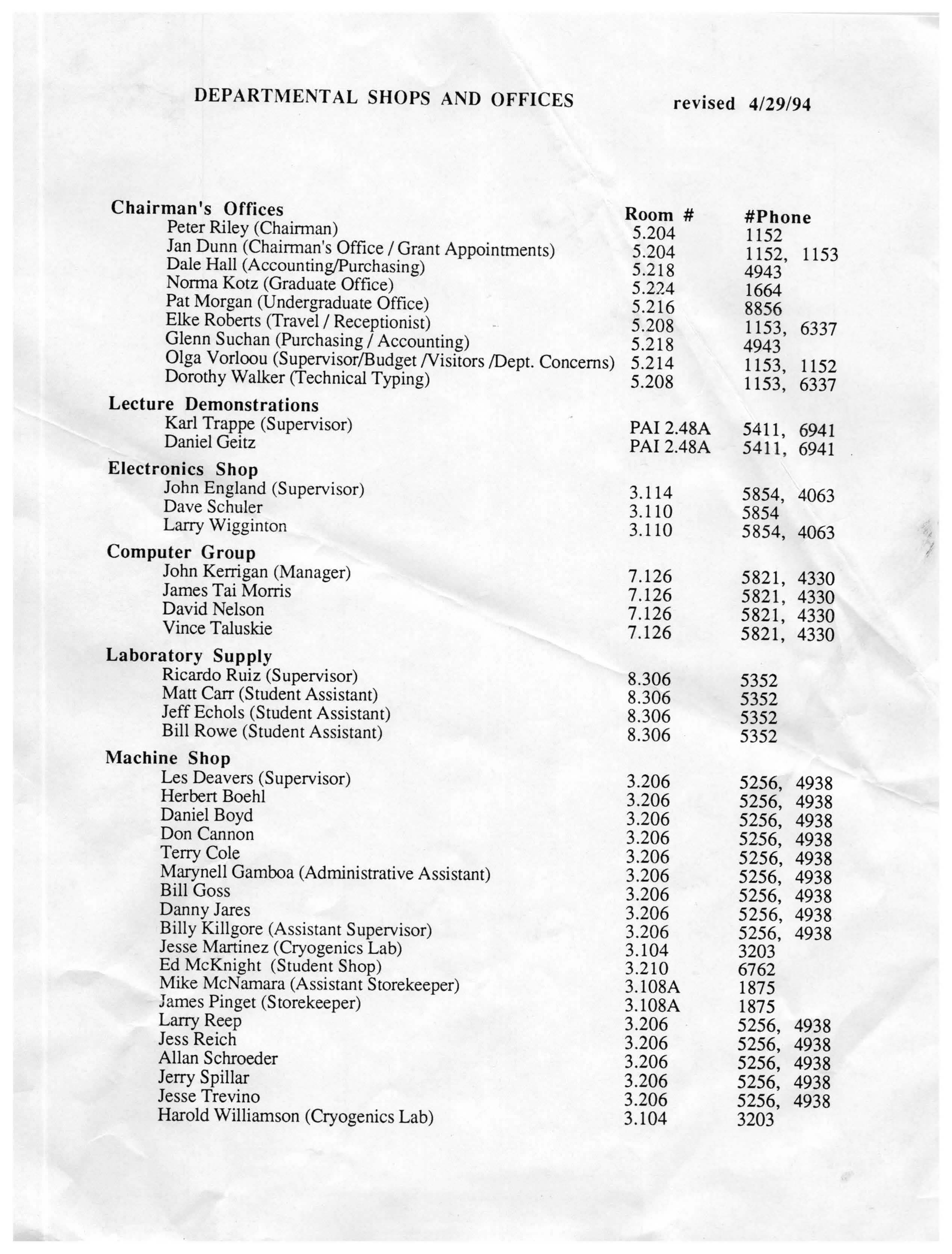 Physics Department Directories