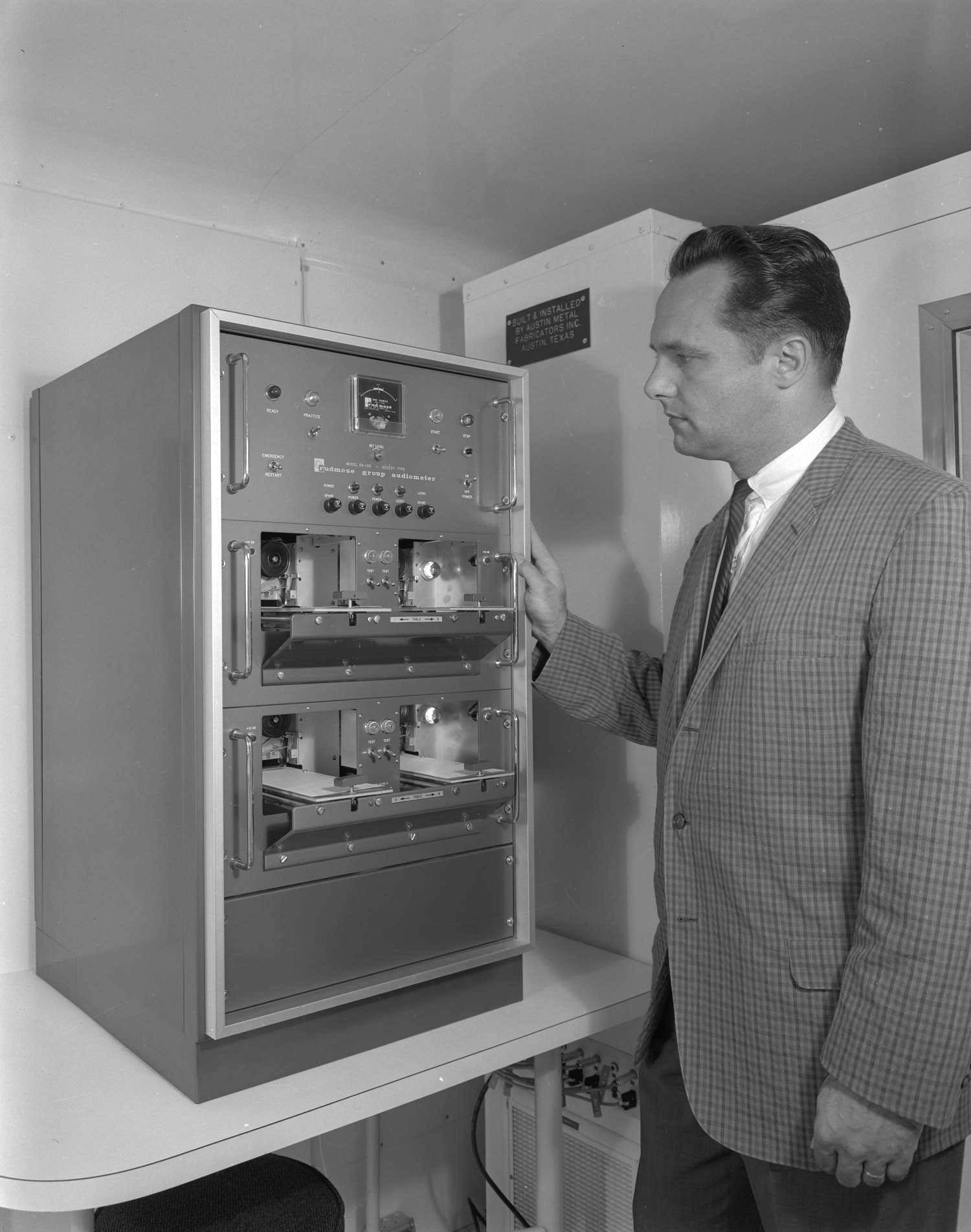 This equipment was first tested at the 1955 Wisconsin State Fair in specially constructed booths. By the late 1960s, employee-controlled self-recording audiometers determined the hearing level by tracing lines on a rectangular card proportional to the employee’s hearing thresholds. The audiometers could be grouped together for concurrent testing of multiple employees or other subjects.