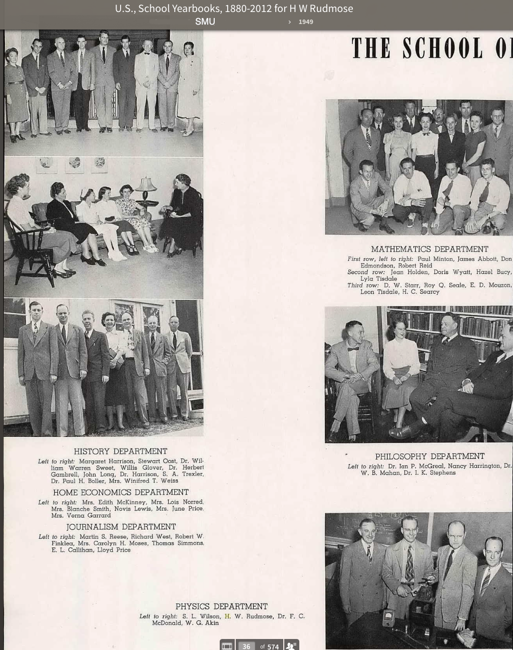 A native Texan, Dr. Rudmose received his PhD from Harvard in 1946, after obtaining his undergraduate degrees from the University of Texas and taking a break to serve in World War II. He became a professor of Physics at Southern Methodist University in Dallas and continued his research.