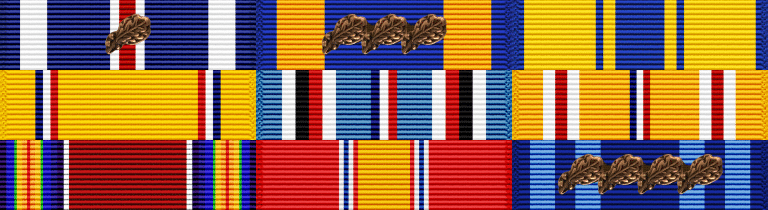 Jack served for 21 years in the United States Air Force from February 8, 1941 to June 30, 1961. He retired at the rank of Colonel and was eligible to wear two Distinguished Flying Crosses, four Air Medals, the American Campaign Medal, the Air Force Commendation Medal, the American Defense Service Medal, the Asiatic Pacific Campaign Medal, the World War II Victory Medal, the National Defense Service Medal, and the Air Force Longevity Service Award with four Oak Leaf Clusters, among others, on his uniform.