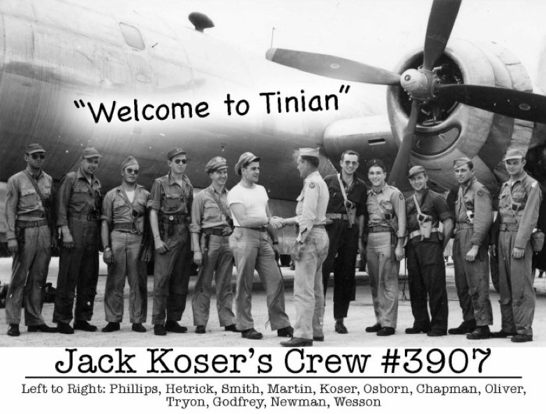 Major Jack D. Koser, (A/C), 1st Lt Harry P. Johnson (Pilot), 1st John J. Cooglin (probably Coghlin)(Navigator), Sgt. Stanley D. Peve, (Engineer), S/Sgt Julian E. Pencovic (Ground Crew), S/Sgt Robert E. Ziegler (Tail Gunner), S/Sgt Alfred B. Daniels (Crew Chief).