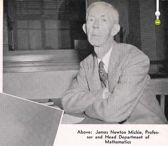 Professor James Newton Michie taught physics course in 1917–1918, maybe other years as well. He was an adjunct professor of applied mathematics.