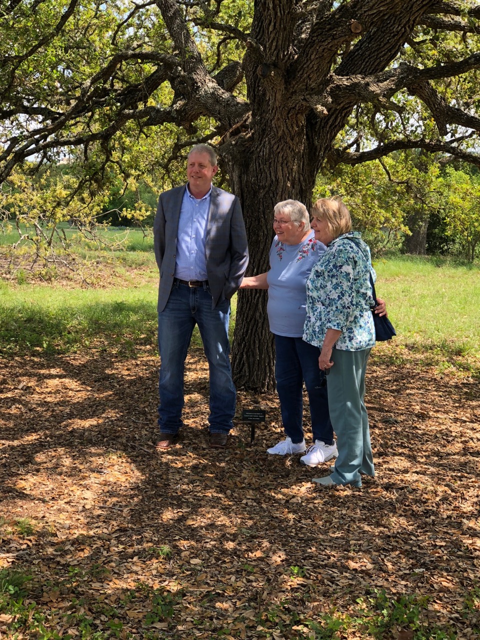 Left to Right: Peter, Diane and June, at Jagger tree didication, Lady Bird Johnson Wildflower Center, Austin, Texas, March 31, 2018 |