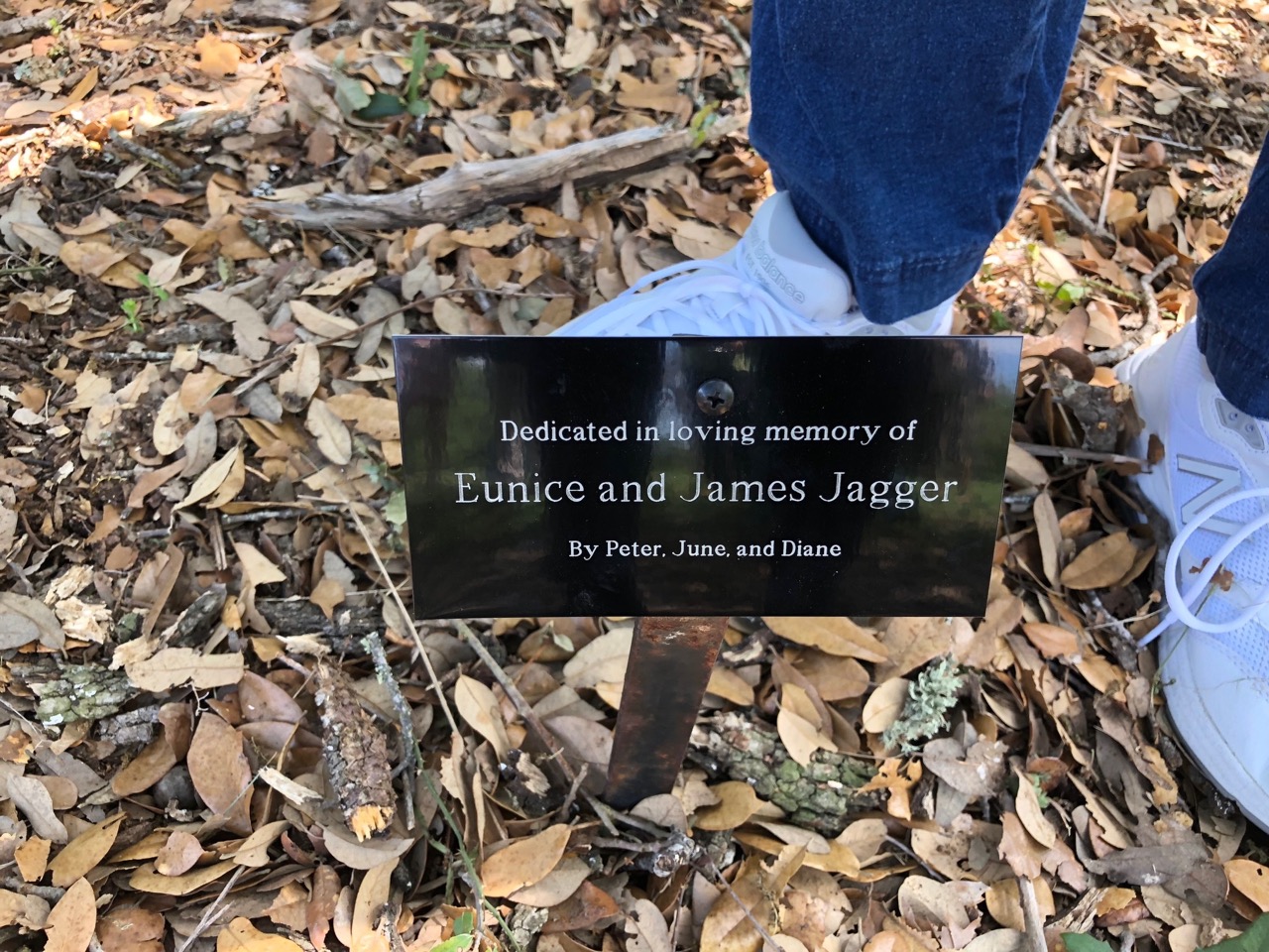 Tree dedicated to Jim and Eunice Jagger, Lady Bird Johnson Wildflower Center, Austin, Texas, March 31, 2018 |