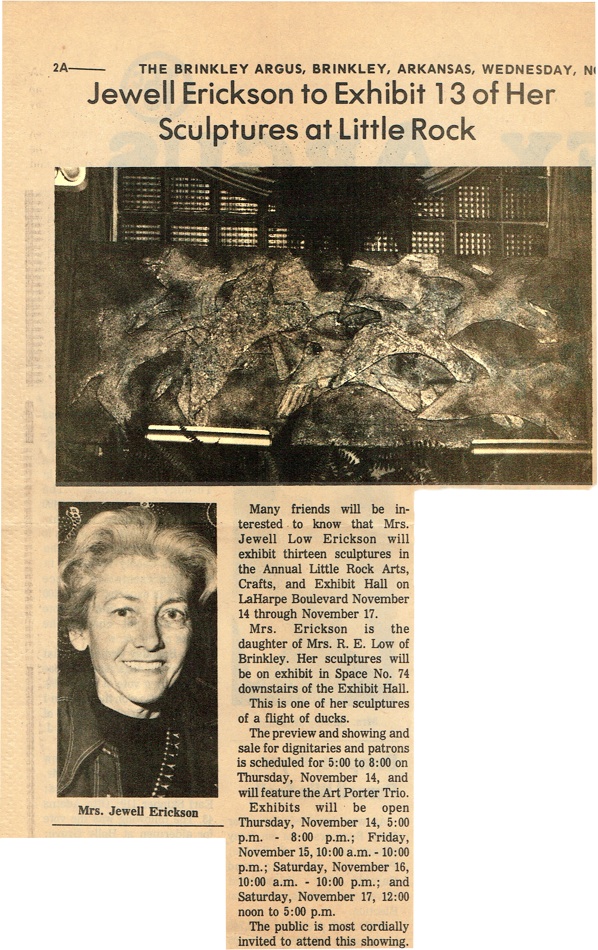 Mr. Erickson was buried in the R. E. Low family plot in Oaklawn Cemetery in Brinkley. Bob Neal and Sons Funeral Home handled arrangements at that city.