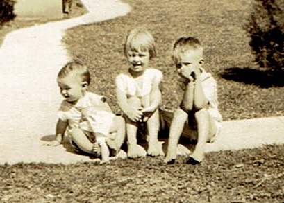 I was born at home in a farmhouse south of Austin to James Holt (1903–1966) and Ozelma Stewart Holt (1904–1998) on March 1, 1929, a few months before the stock market crashed. Both of my parents were born and grew up on farms south of Austin in the Pleasant Hill community. I have a sister, Margaret, who is four years older. The photo at right, reading left to right, is of me, Margaret and our neighbor Joe Greer Russell (1926–2008). The photo is from 1929. Joe Greer had a successful career as an artist. Most of his works were devoted to western subjects. President and Lady Bird Johnson owned a number of his paintings and invited him to their ranch to paint a scene there.