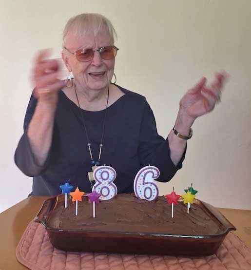 Lois turned 86 in 2015; below she celebrates with a cake from her sons.