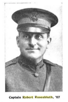 On the outbreak of the World War I, Rosenbluthl volunteered; was sent to Plattsburg: and was appointed first lieutenant in the Engineer Corps AEF, and went to France.