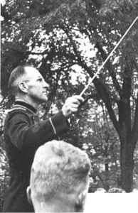 The last half of the 1930s saw the establishment of the marching band. Under the direction of Ray Dvorak, the marching band became nationally renowned for the many innovations brought to the halftime presentation. According to the University of Wisconsin News Service, “Professor Raymond R. Dvorak has developed many ‘firsts’ in the field of band pageantry at athletic contests, especially football games. He developed the singing band, mass singing, formations without signals, and animated formations. He originated the airplane band formation with sound effects; the formation of the score of the game immediately after the game; flank and oblique movements in formations; and the singing of ‘salute’ songs to the competitors.”