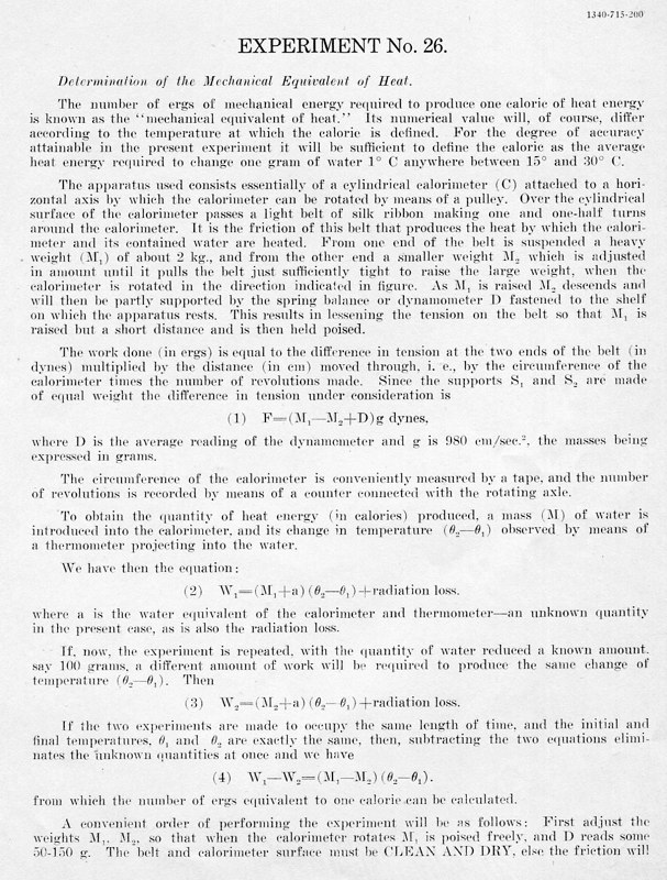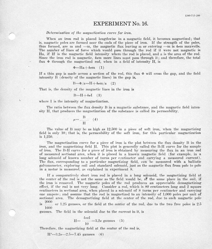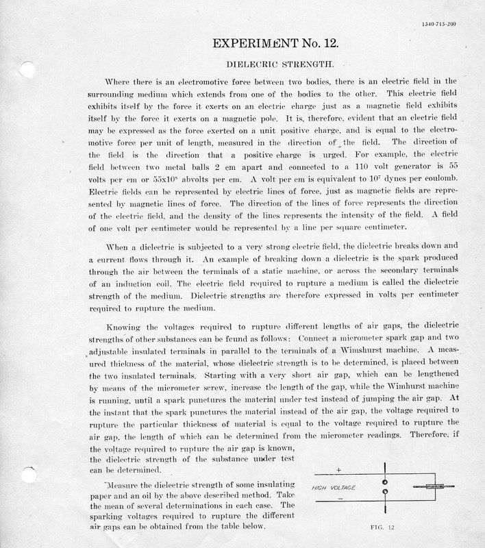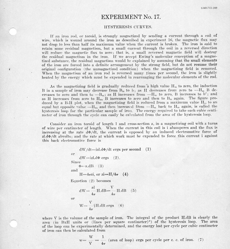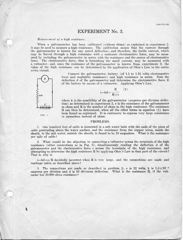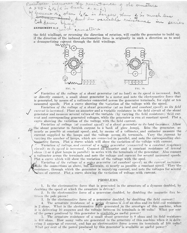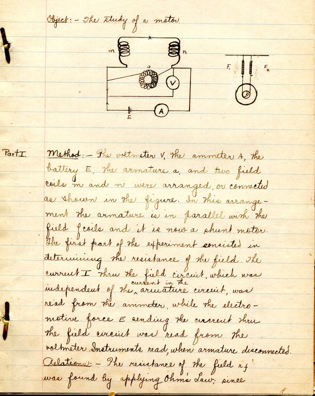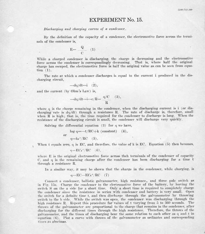 The course Physics 42,2 was an upper division course entitled, Magnetism, Electricity, Light and Sound. The lecture met for three hours each week and the laboratory also was a three-hour session. Prerequisites: Mathematics 1 (This was an applied mathematics course for engineering students, there was also a Department of Pure Mathematics at this time.) Physics 1—General Physics or Physics 38—Mechanics and Heat. Lecture was in K Hall and laboratory was in the Main Building. It must have been a popular course, since, in 1921, eight sections were listed.
