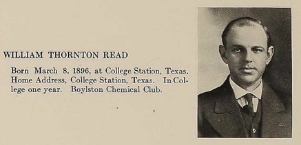 William Sr. was an instructor at Yale for a number of years. In 1925, he was lured away from Yale to be Head of the chemistry department at the newly created Texas Tech University. While there the university president detemined that Read needed more help with his duties. Here is an excerpt from An Early History of Chemistry at Texas Tech University, 1925–1970, Bull. Hist. Chemistry Vol 29, No. 1 (2004), “The only other appointments to help Read in his work were of Hulda Wilde Marshall and Roxie Clark Read in 1926, and of William Mackey Slagle in 1928. Roxie Clark Read was Read’s wife, who had an MA degree (1918) in chemistry from UT. Her appointment at TTC was negotiated by Horn in order to avoid the criterion of nepotism that prevented Read himself from hiring his wife. Horn arranged for the appointment to be made directly by the Board of Directors. One wonders, though, how, in 1926, Ruth B. Studhalter remained an instructor in biology while her husband, Richard A. Studhalter, was listed as Head of Biology; that appointment has yet to be researched.” In 1930, William Sr. became the Dean of the School of Chemistry at Rutgers University. In 1943, he went into government service with chemical problems in the War Production Board. He then organized the National Roster of Scientific Personnel for the use of the armed forces in production. He also served as head of the Scientific Information Section for the Chief of Staff of the U. S. Army.