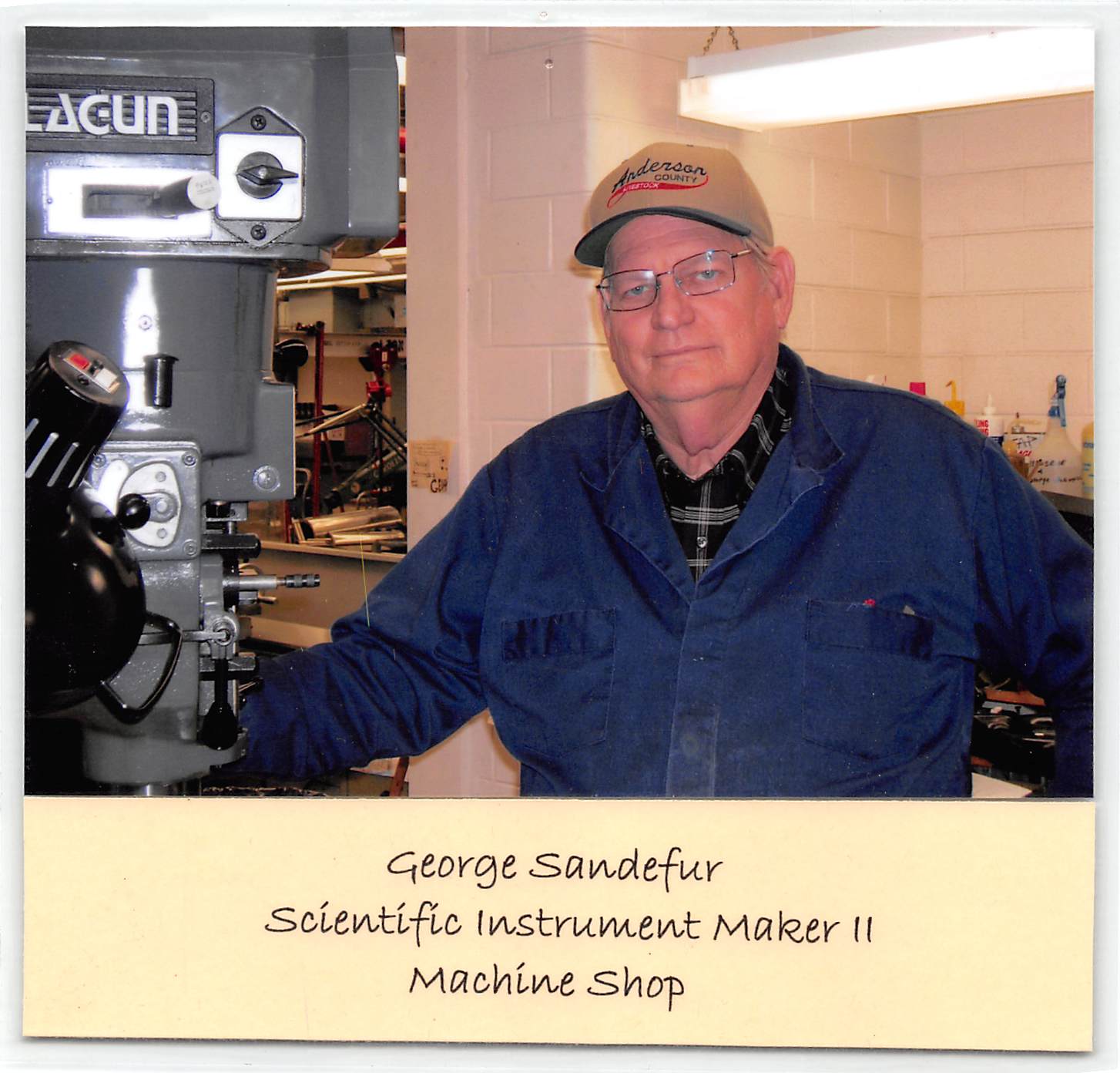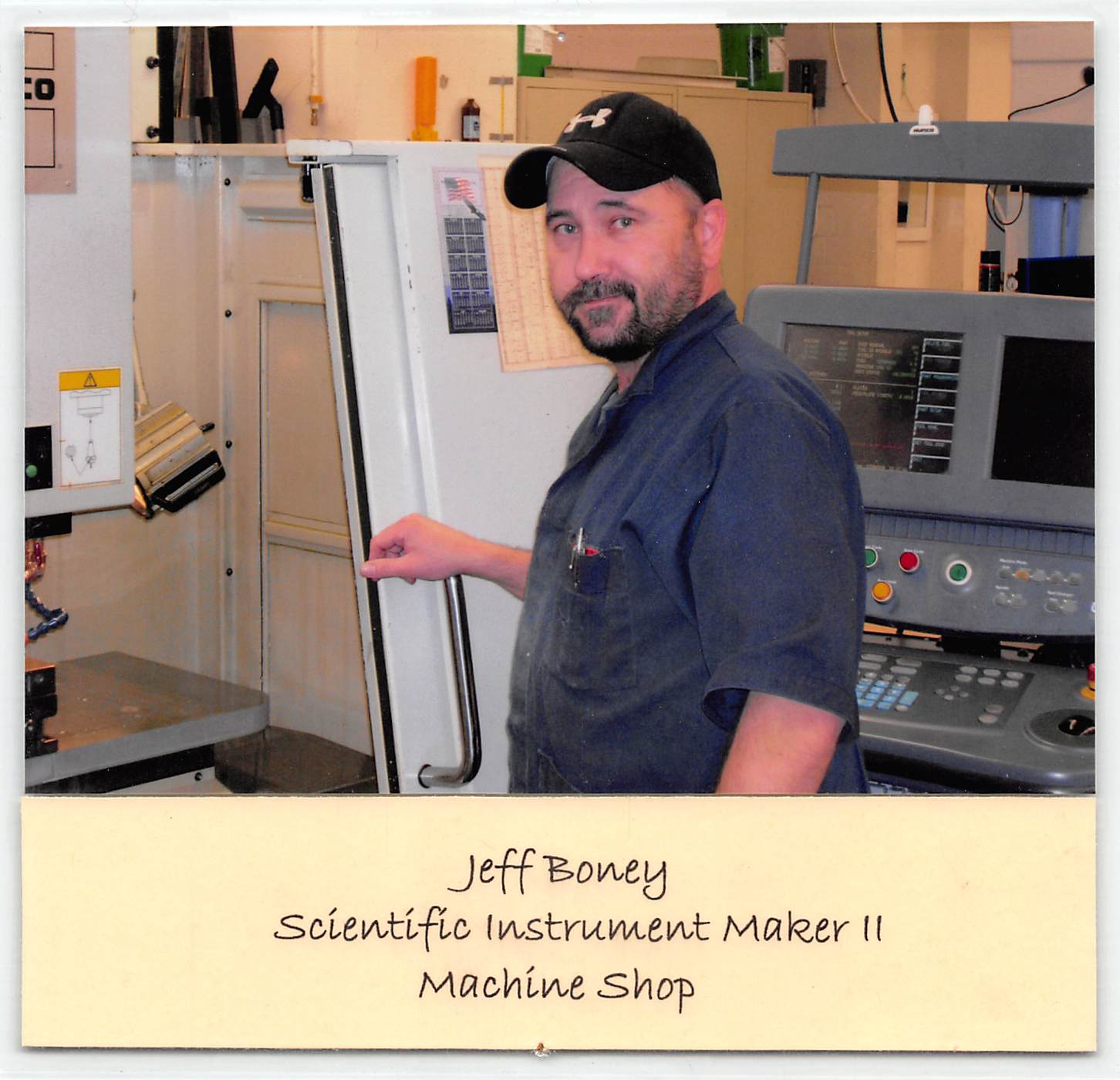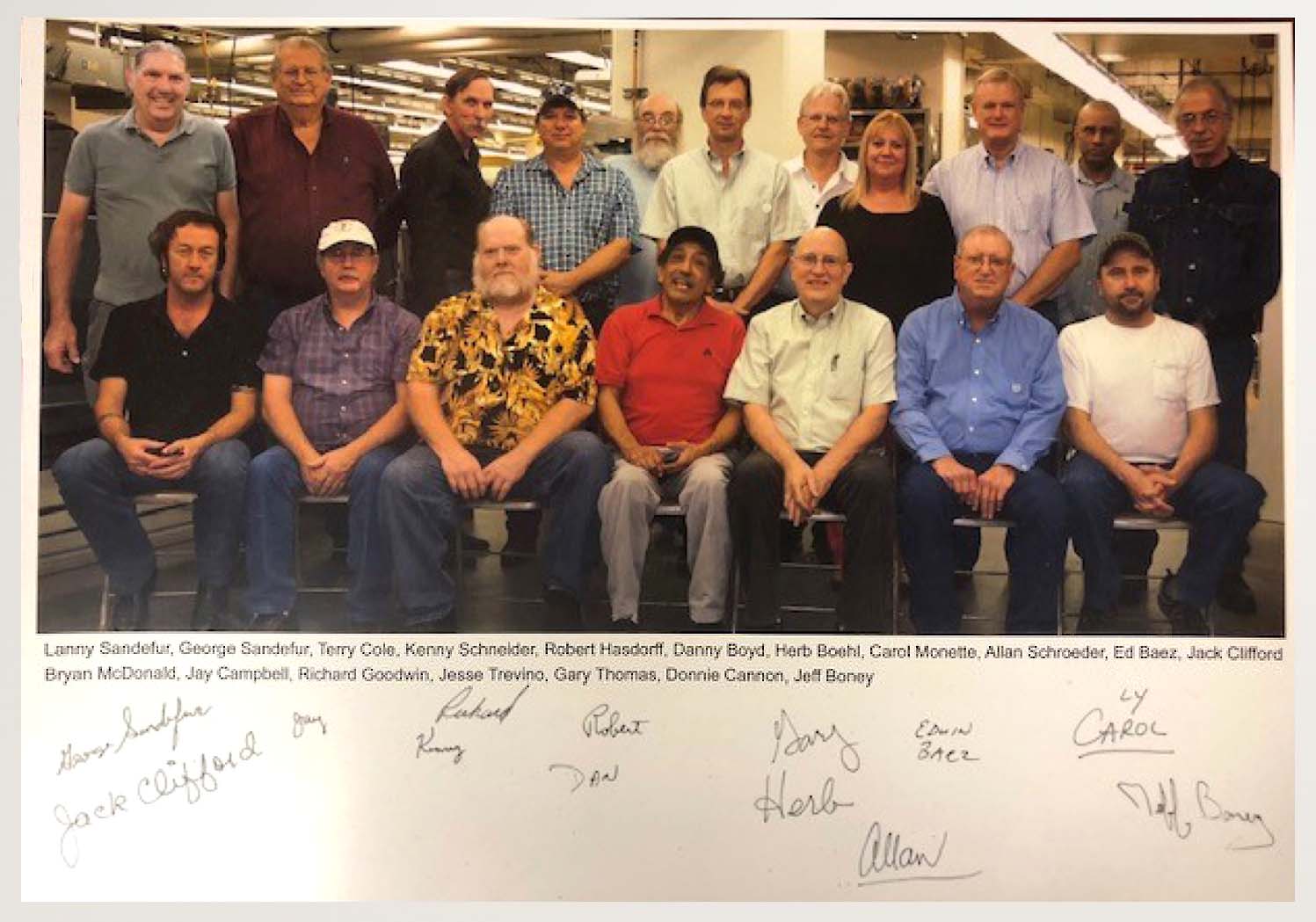 Physics Machine Shop Staff 2014 Front Row, L to R: Bryan McDonald, Jay Campbell, Richard Goodwin, Jessie Trevino, Gary Thomas, Donnie Cannon, Jeff Boney Back Row, L to R: Lanny Sandefur, George Sandefur, Terry Cole, Kenny Schneider, Robert Hasdorff, Danny Boyd, Herb Boehl, Carol Monette, Allan Schroeder, Ed Baez, Jack Clifford |