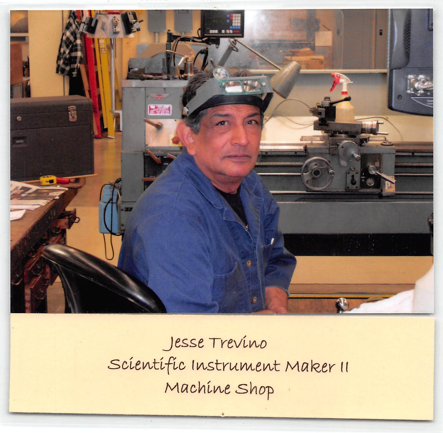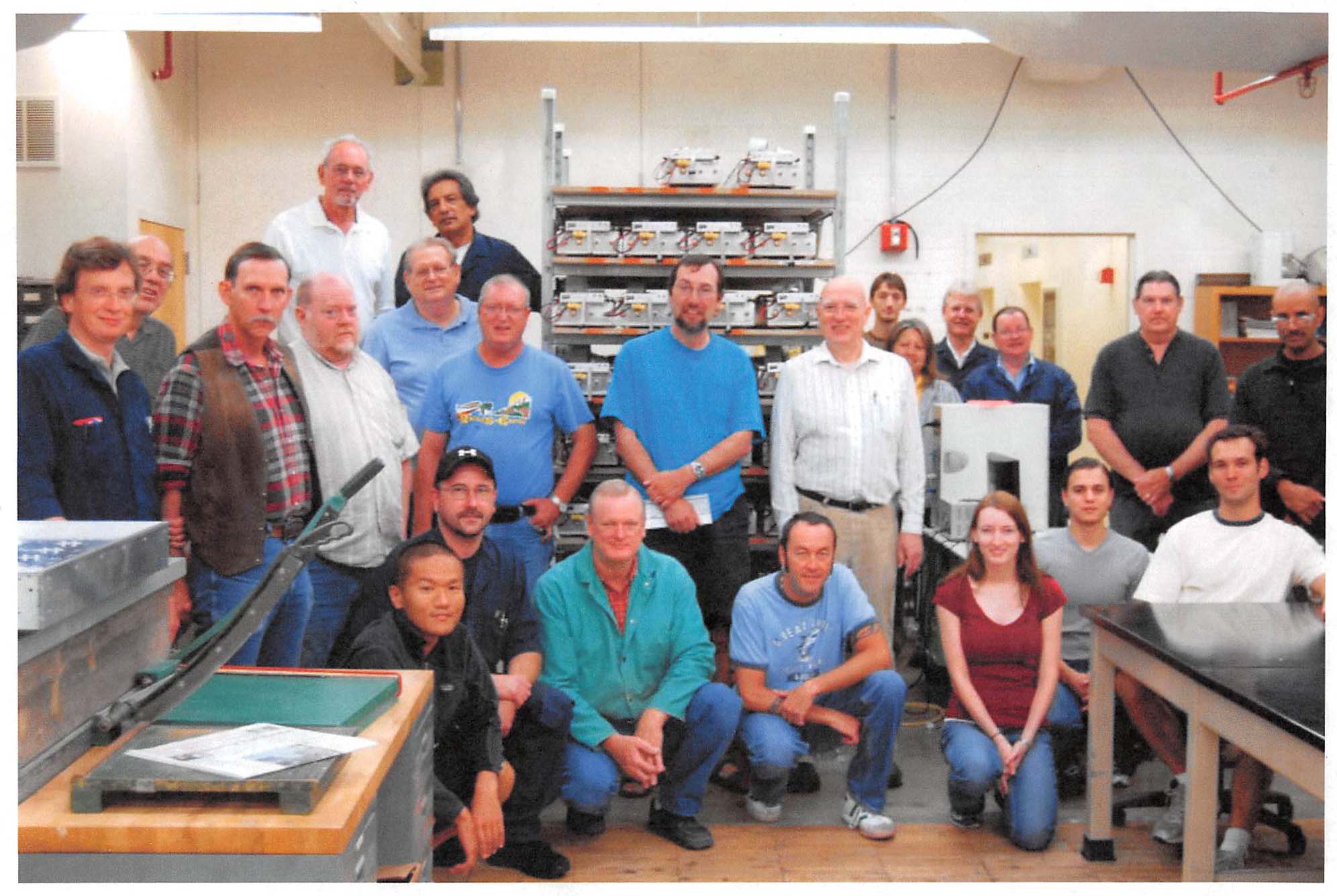 Physics Machine Shop Staff Back Row , L to R: Donnie Cannon, Richard Goodwin, Terry Cole, Allan Schroeder, Danny Boyd, George Sandefur, Herb Boehl Front Row: L to R: Brian McDonald, Lanny Sandefur, Jay Campbell, Jesse Trevino, Ed Baez, Jeff Boney |