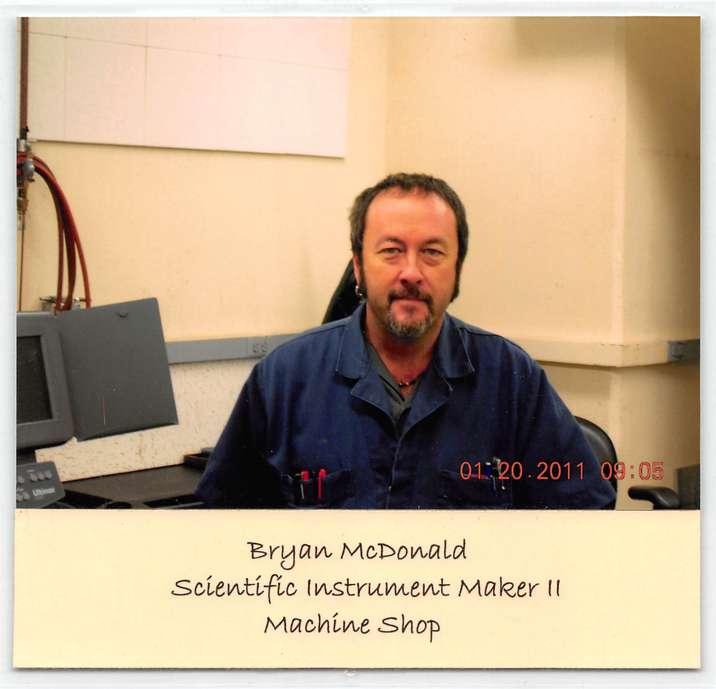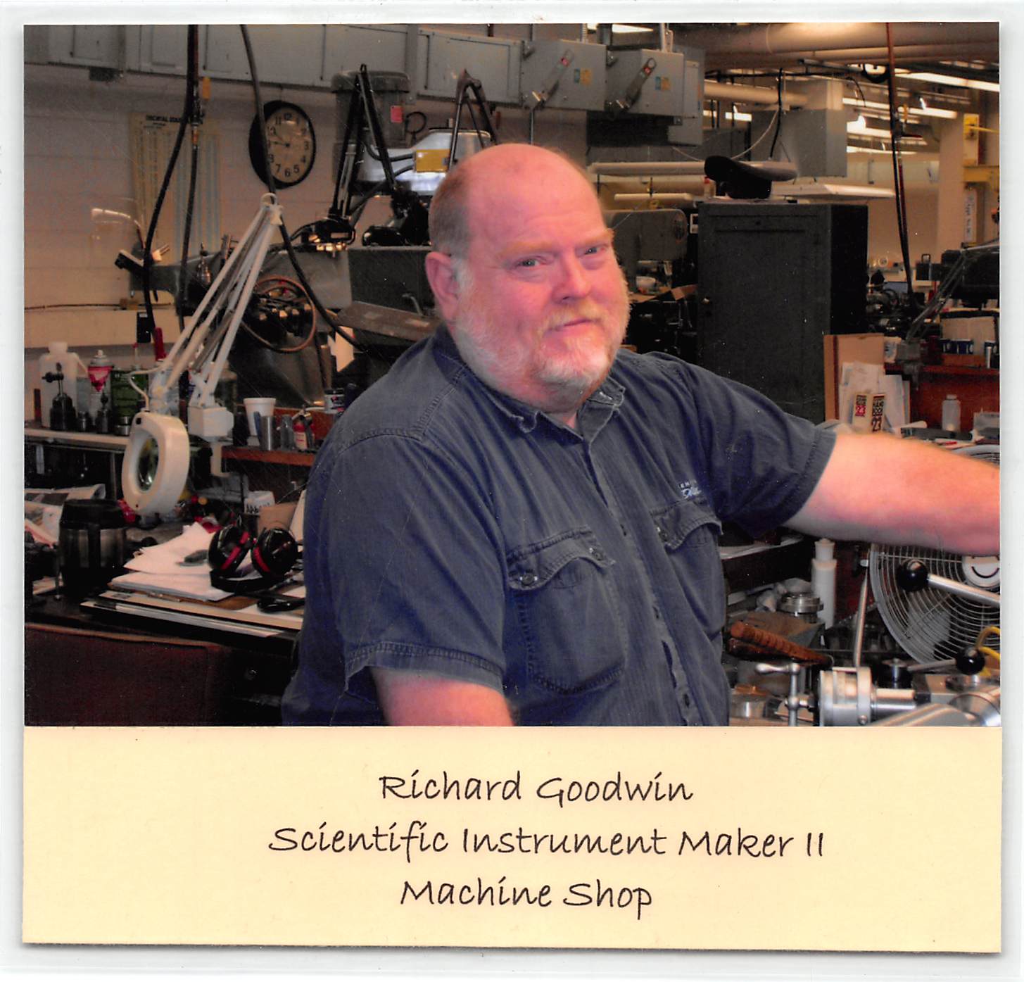 The Physics Machine Shop has always been considered a much treasured asset by faculty and students. The department was blessed with excellent machinists and a number of high quality tools. The shop, day in and day out, created the custom devices and precision work necessary to conduct cutting edge research. The staff provided valuable advice in the design of often “one-of-a-kind equipment.” The special character of the shop personnel was demonstrated in the following incident that occurred in the shop on January 17, 1989, at 11:43 AM.