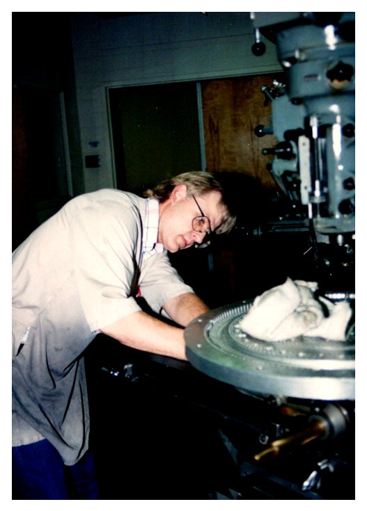 In 1987, Allan heard of a job opening in the Physics Machine Shop at The University of Texas at Austin. Because of the future not looking good at Balderson Berger, Allan decided to apply for the Scientific Instrument Maker I position in Physics. In May of 1987, Allan contacted Les Deavers for an interview. That evening, following the interview, Les contacted a mutual friend that lived in Elgin and asked him to contact Allan. Les felt that after the interview process, Allan knew more about machining than was listed on his resume. After updating his resume, Allan contacted Les for a second interview. Shortly after that, Les offered Allan the position and he started working in the Physics Shop on July 1, 1987.