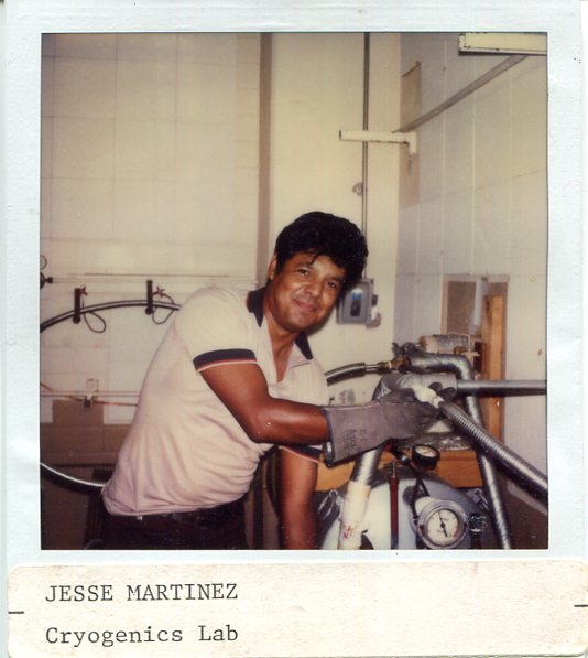 Physics Machine Shop Staff Back Row, L to R: Jerry Hoffmann and Jesse Trevino Standing: L to R: Danny Boyd, Robert Hasdorff, Terry Cole, Richard Goodwin, George Sandefur, Donnie Cannon, Joe Schaumbach, Gary Thomas, Right Back: ?, Sandy Campbell, Herb Boehl, Jay Campbell, Lanny Sandefur, Ed Baez Kneeling: ?, Jeff Boney, Allan Schroeder, Brian McDonald, Liz, ?, Dillon |