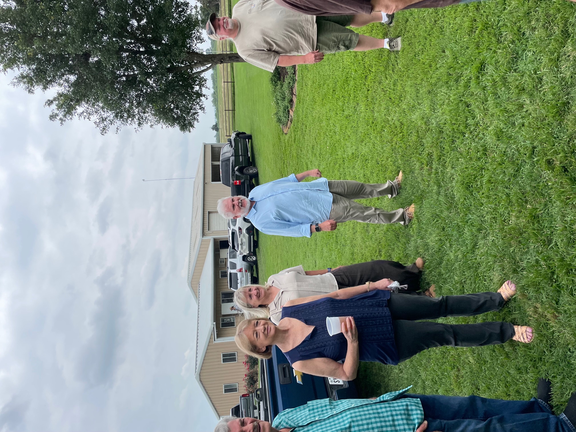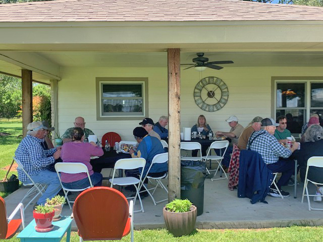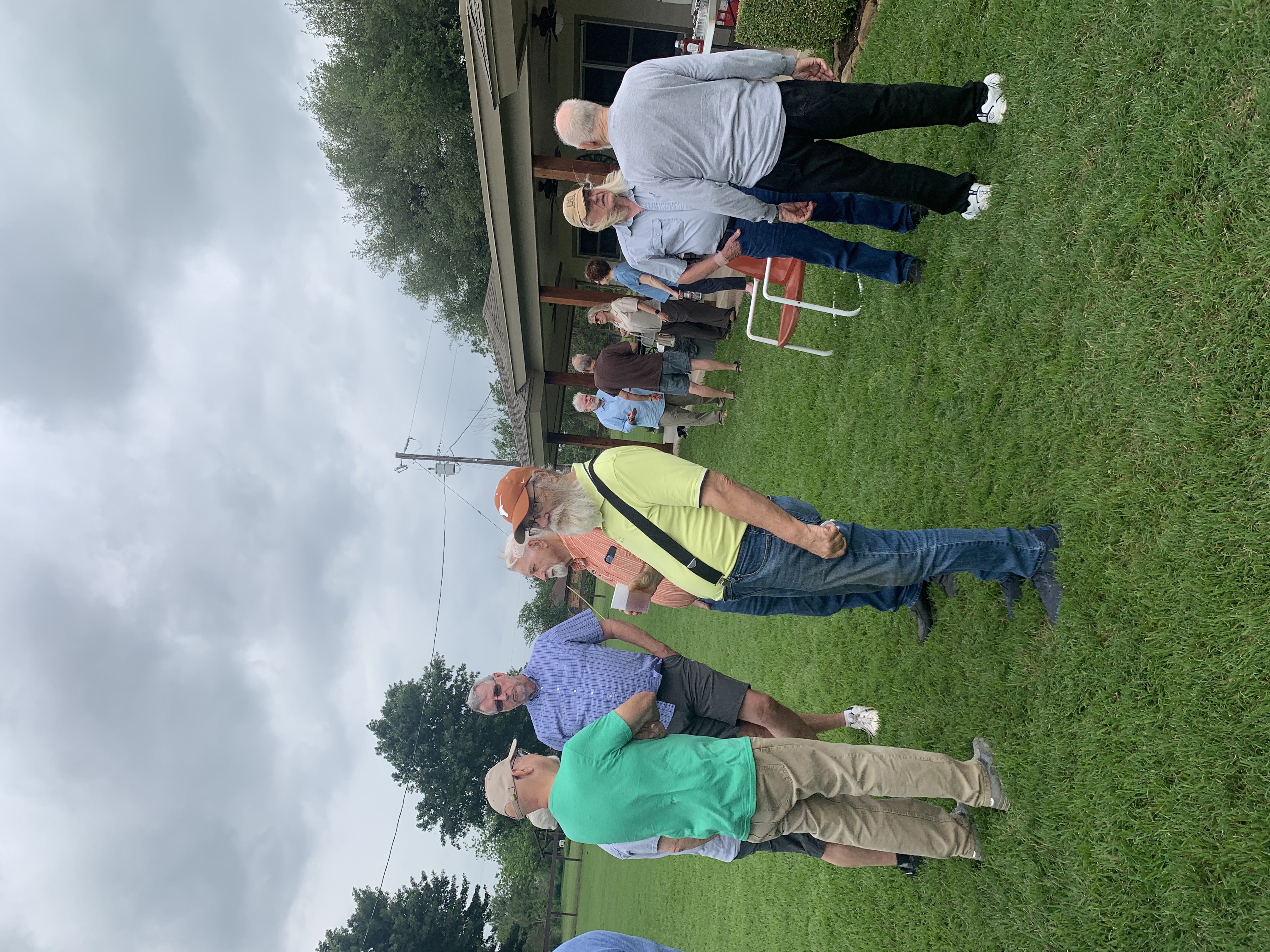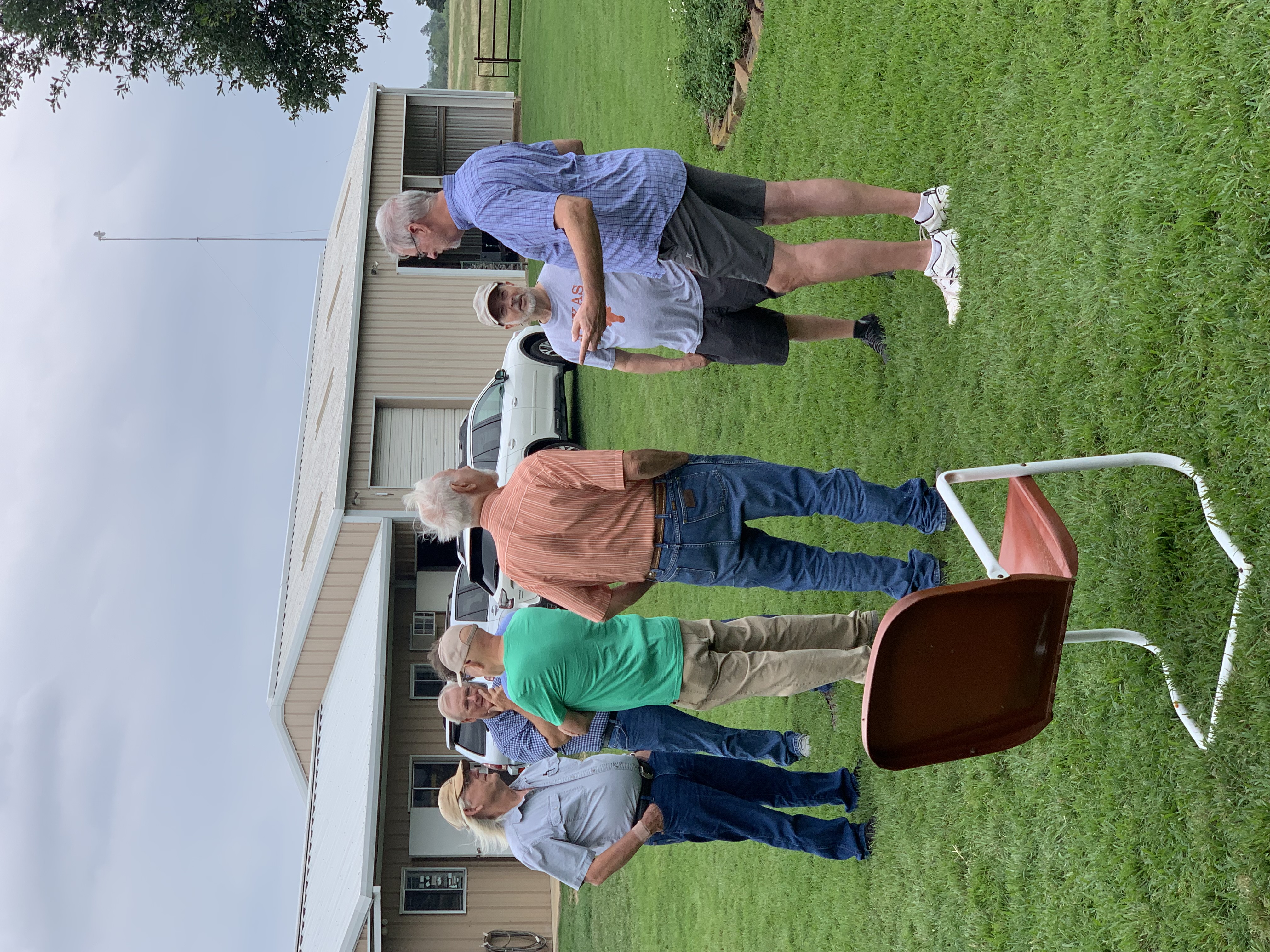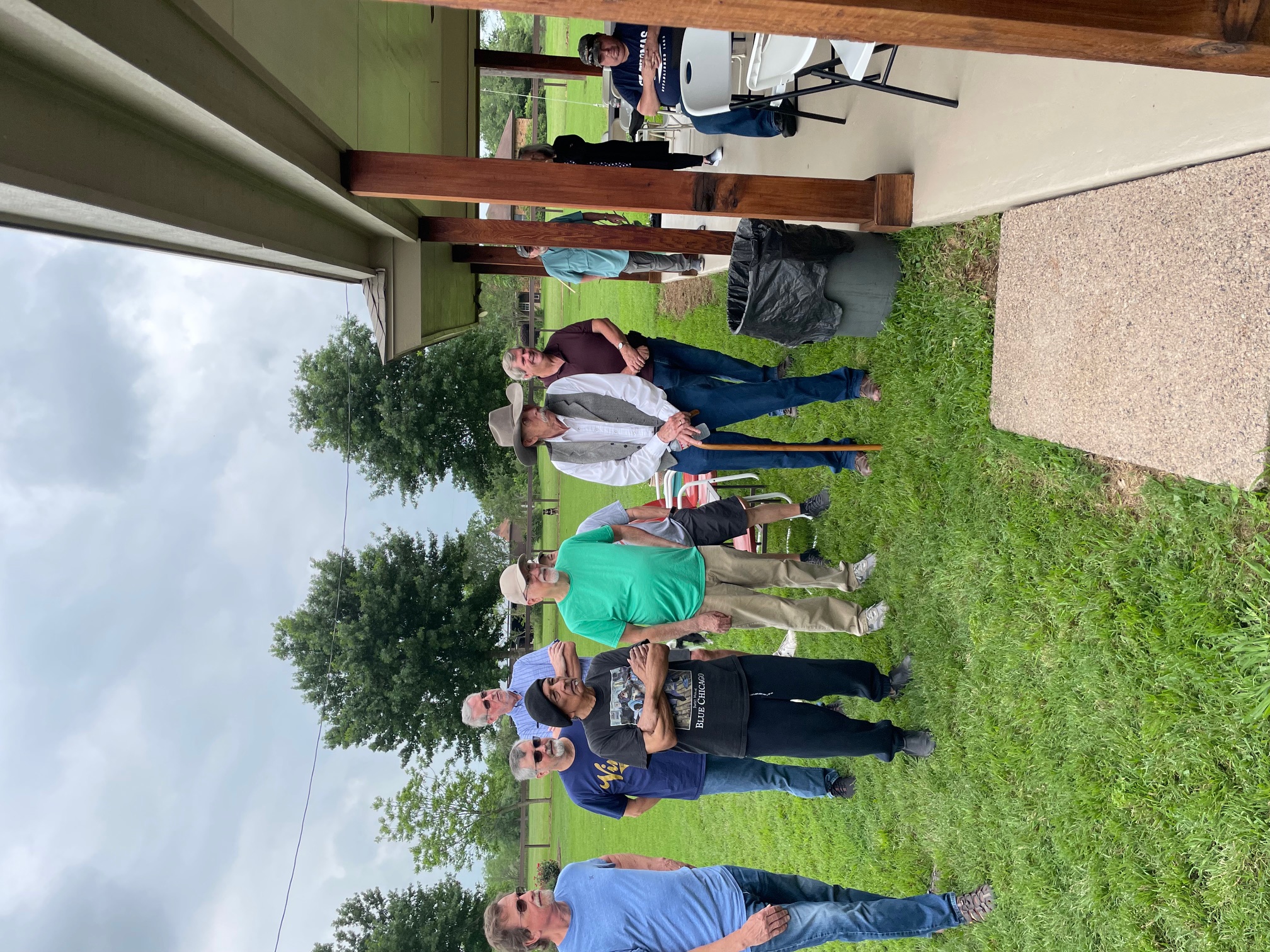 Physics Shop Reunion 2022, Home of Allan Schroeder and DeeDee Skidmore, Elgin, TX Front Row, Seated: Carol Monette, Donnie Cannon, Diane Cannon. |