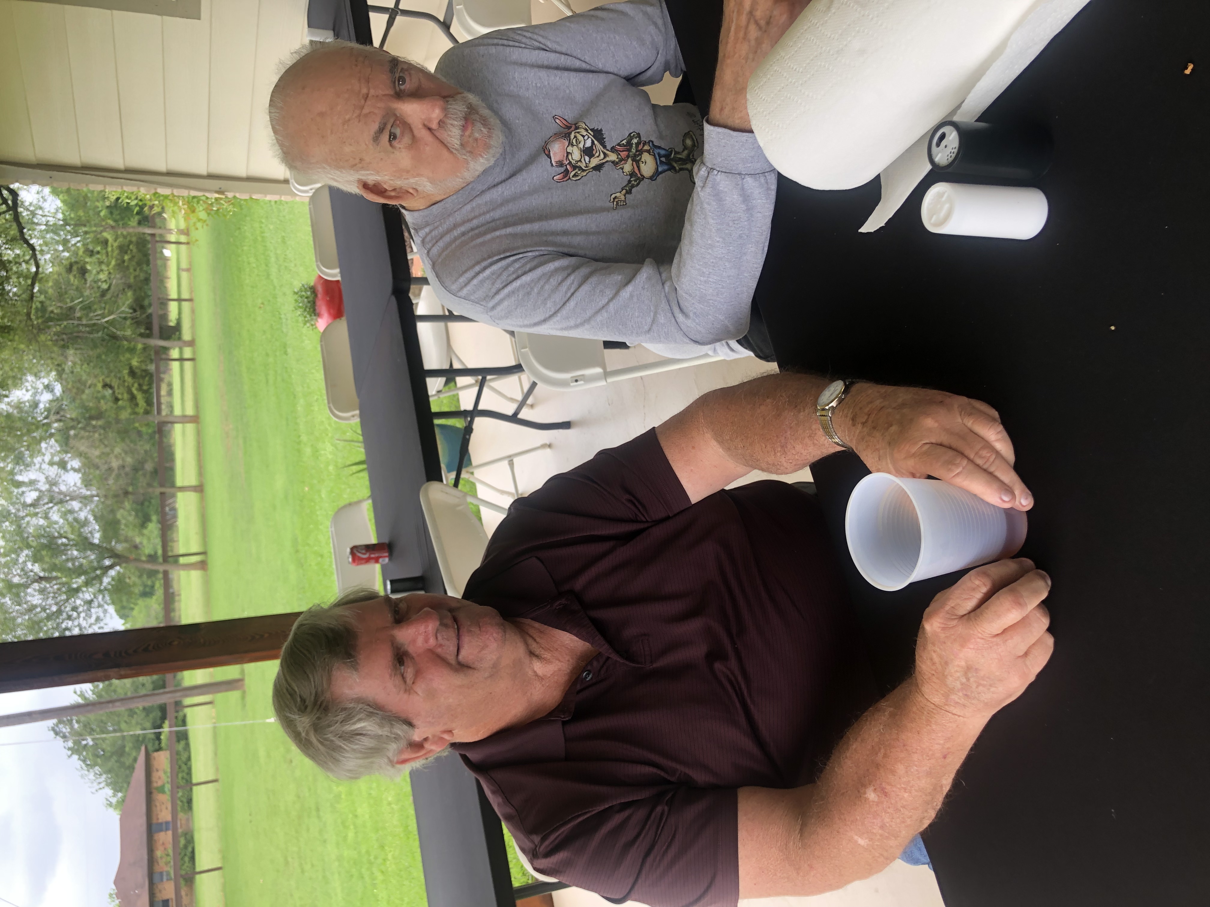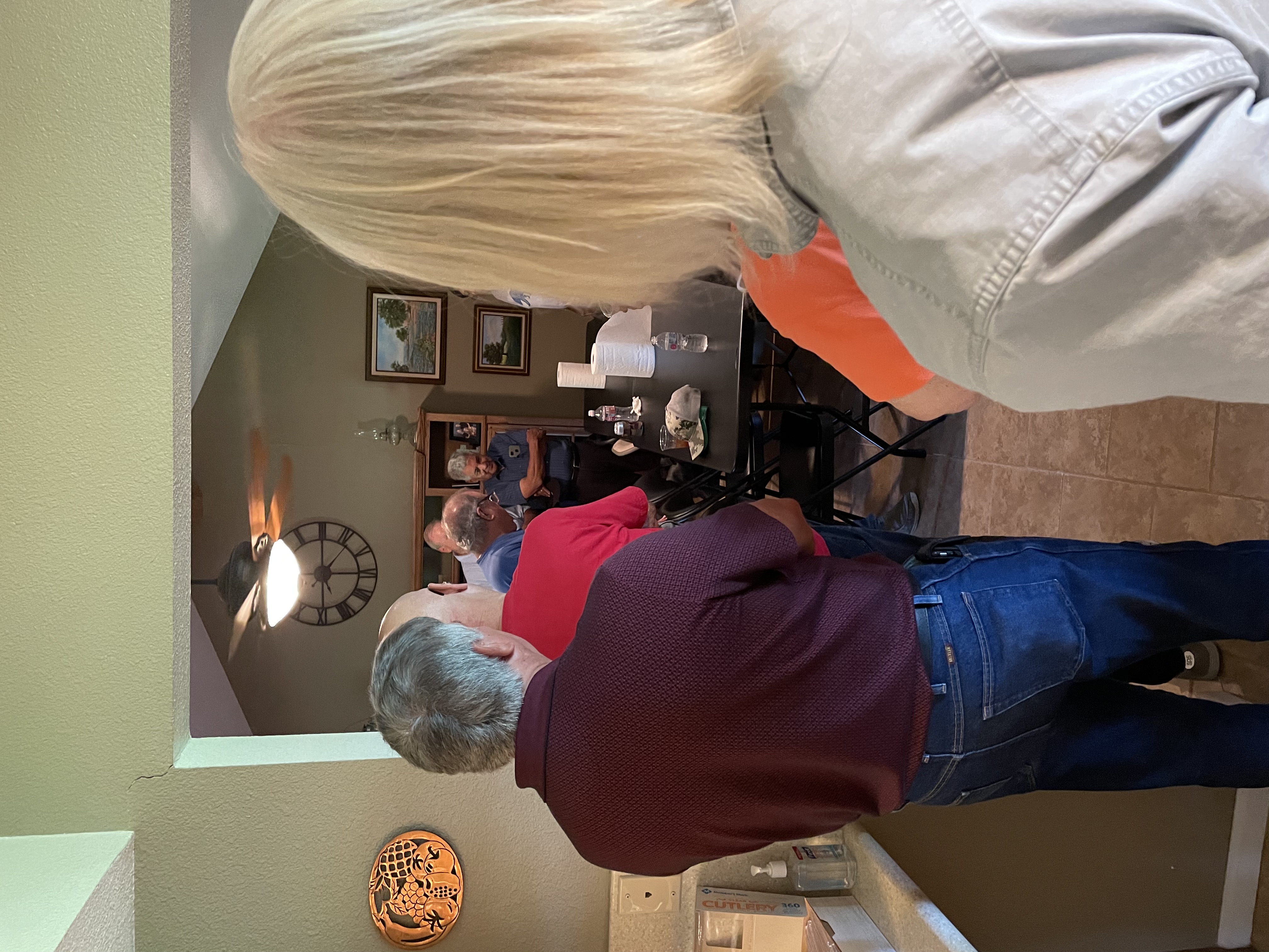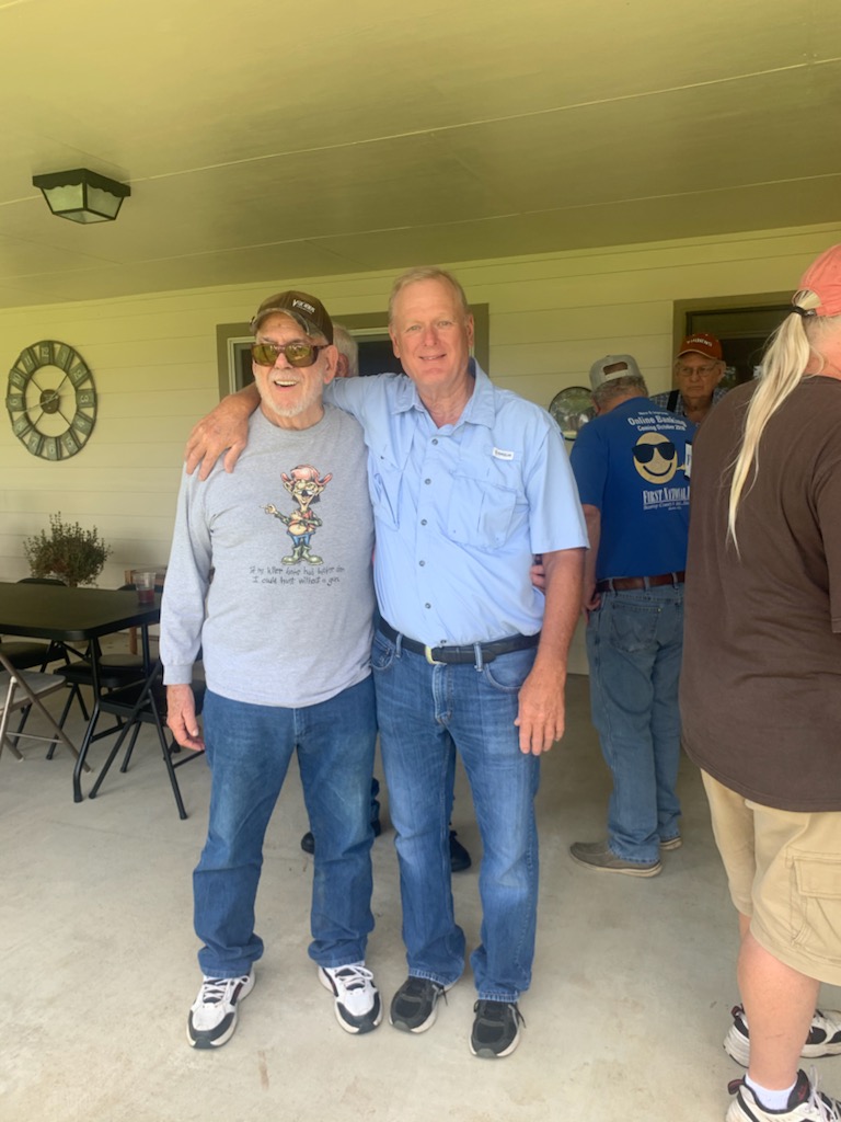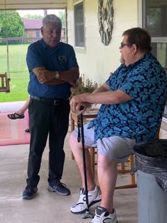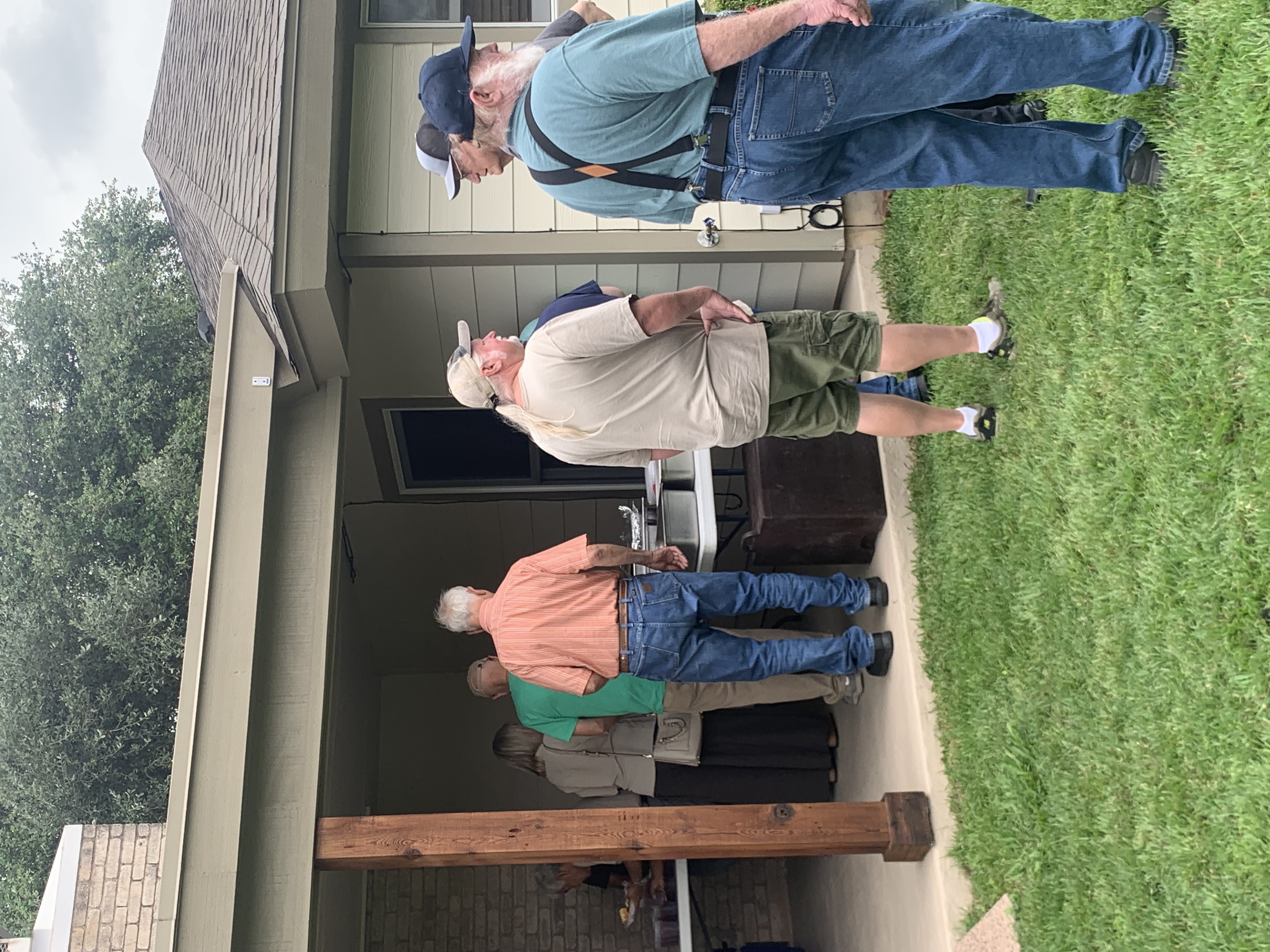 Physics Shop Reunion 2022, Home of Allan Schroeder and DeeDee Skidmore, Elgin, TX Front Row, Seated: Carol Monette, Donnie Cannon, Diane Cannon. |
