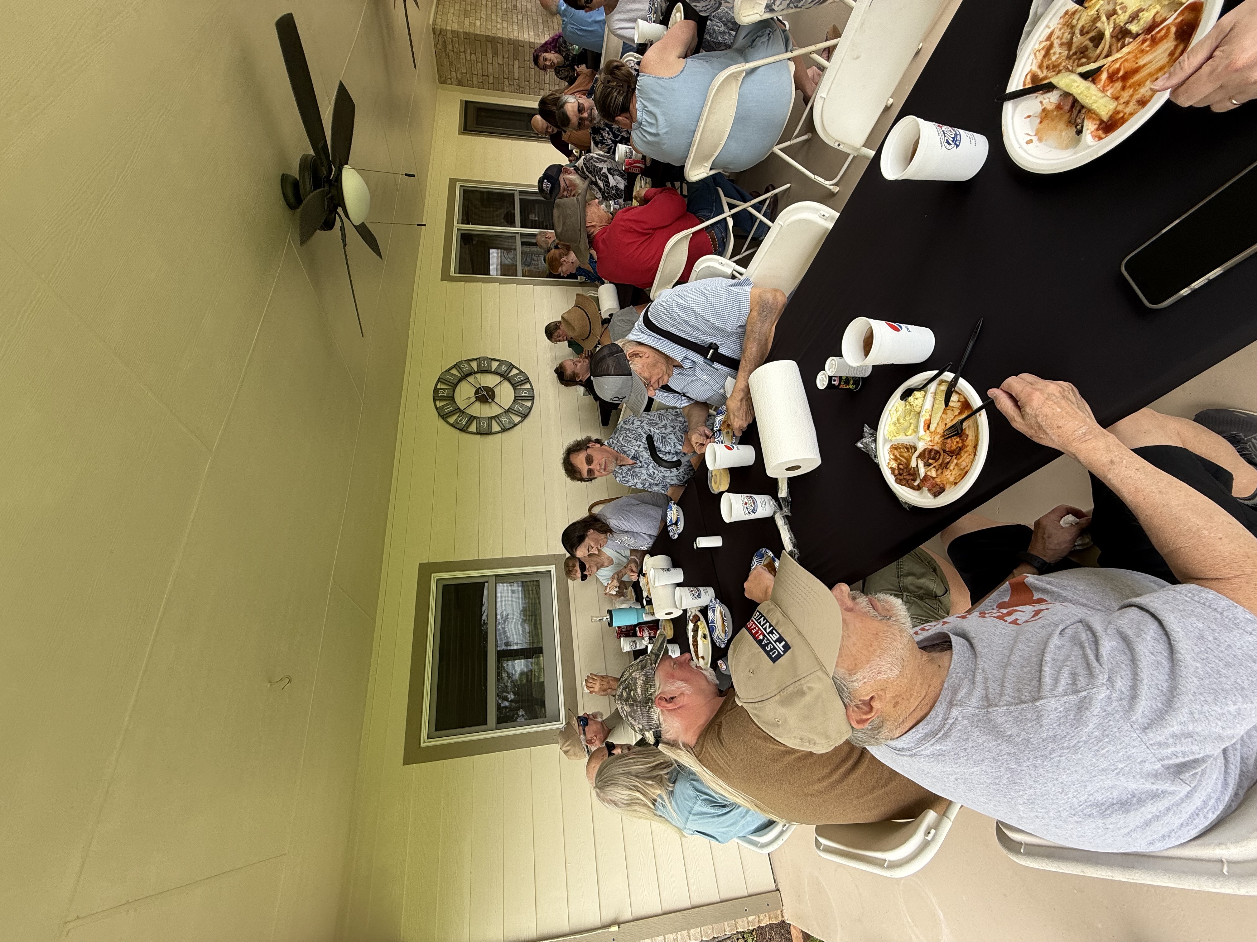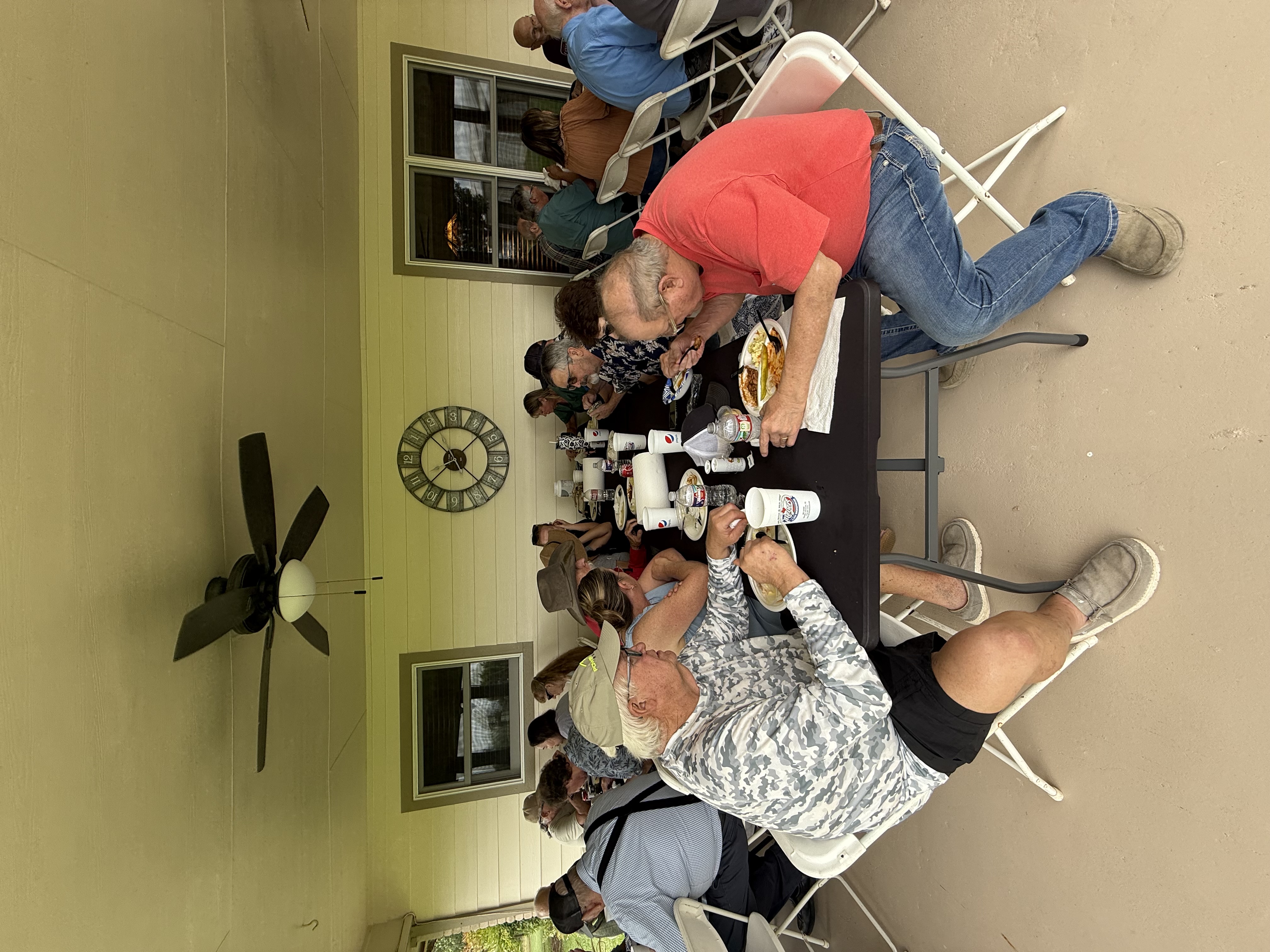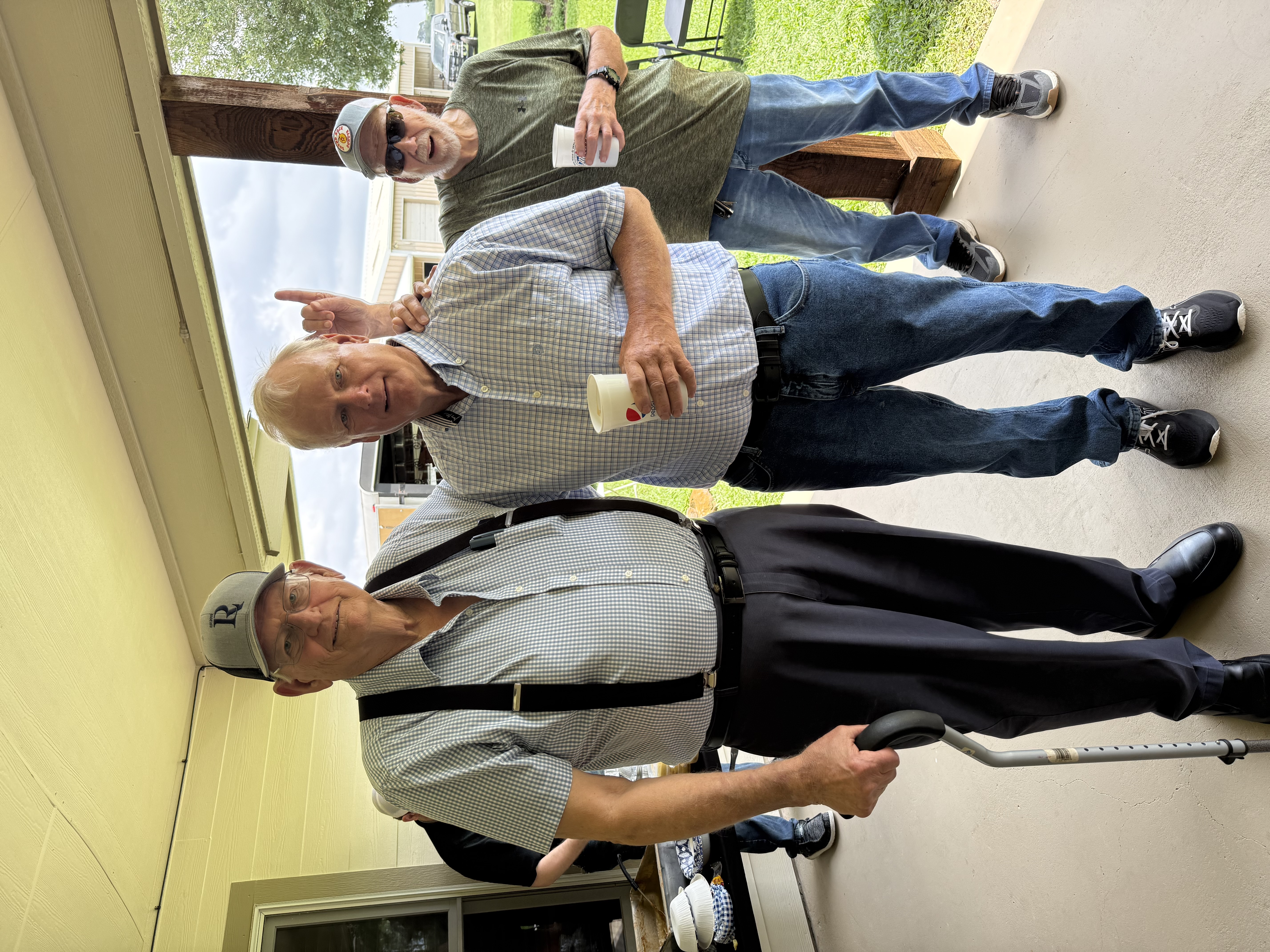 Physics Shop Reunion April 26, 2025, Home of Allan Schroeder and DeeDee Skidmore, Elgin, TX Front Row: Nanette Carter, Donnie Cannon, Judy Kilgore, John Keto, John Kerrigan, Harry Swinney, Jesse Martinez, Mary Franklin, Carol Monett, Terry Cole |