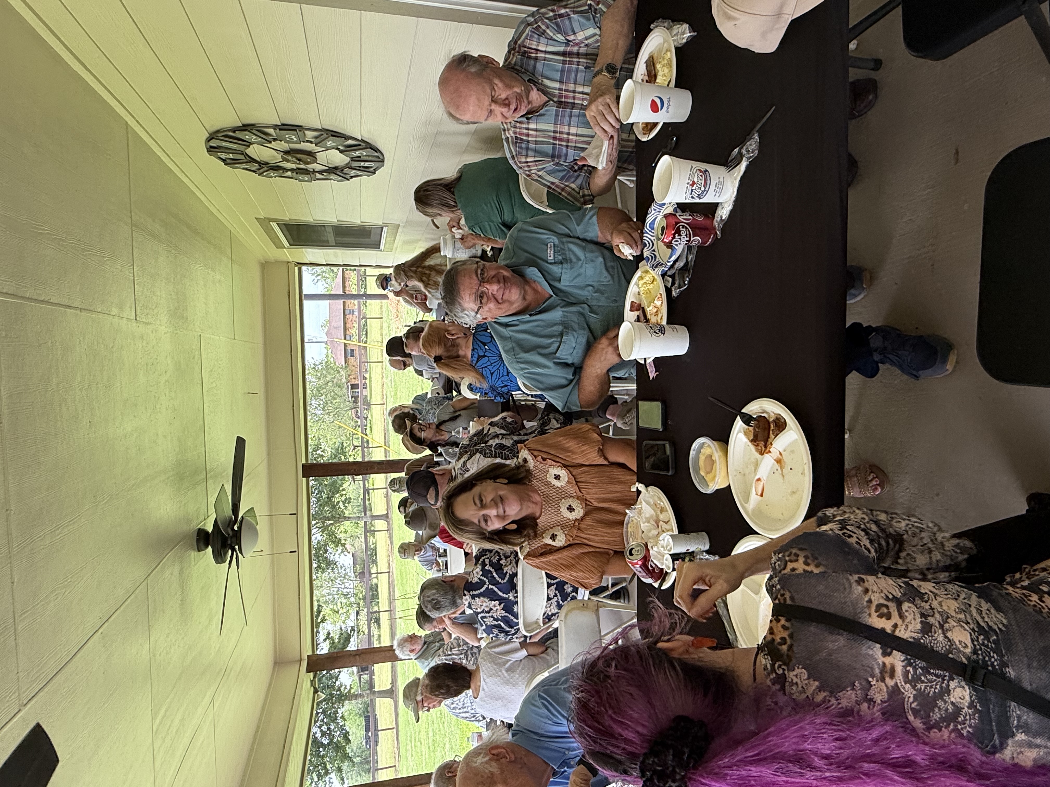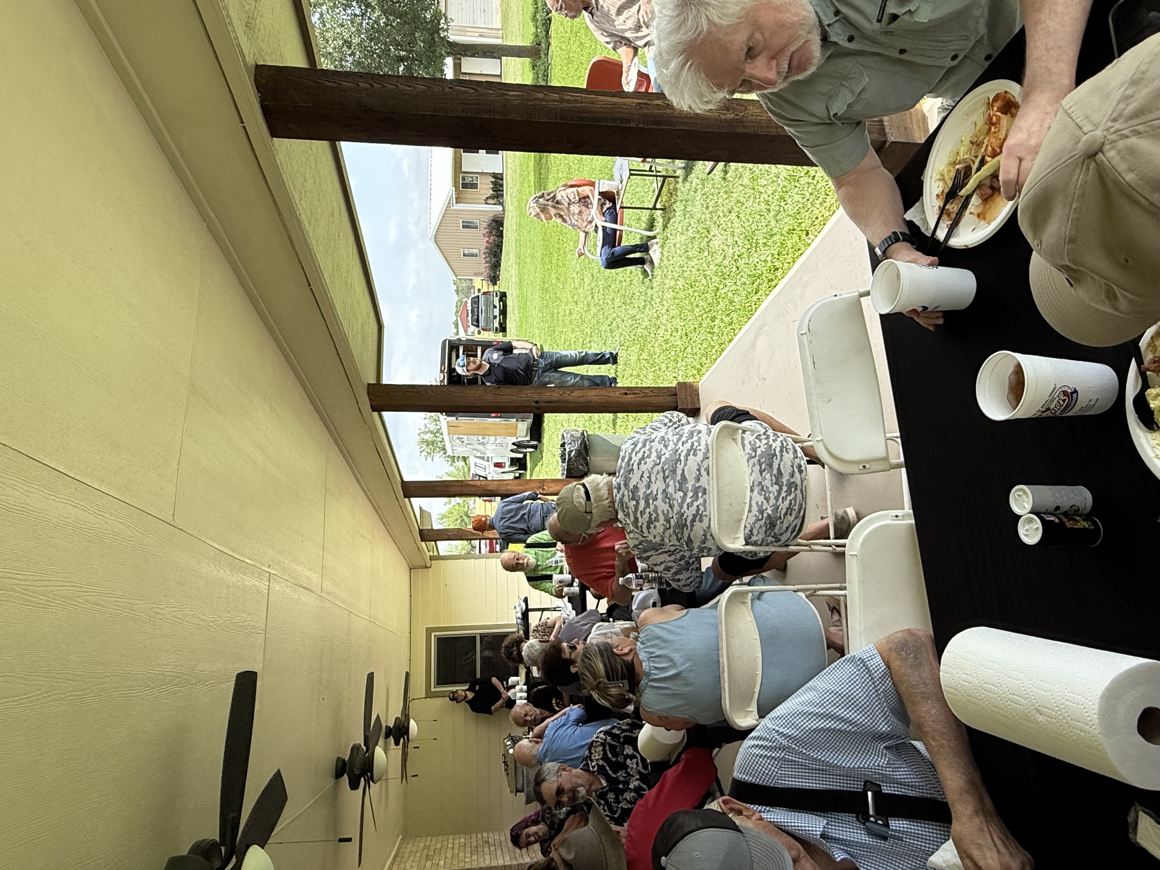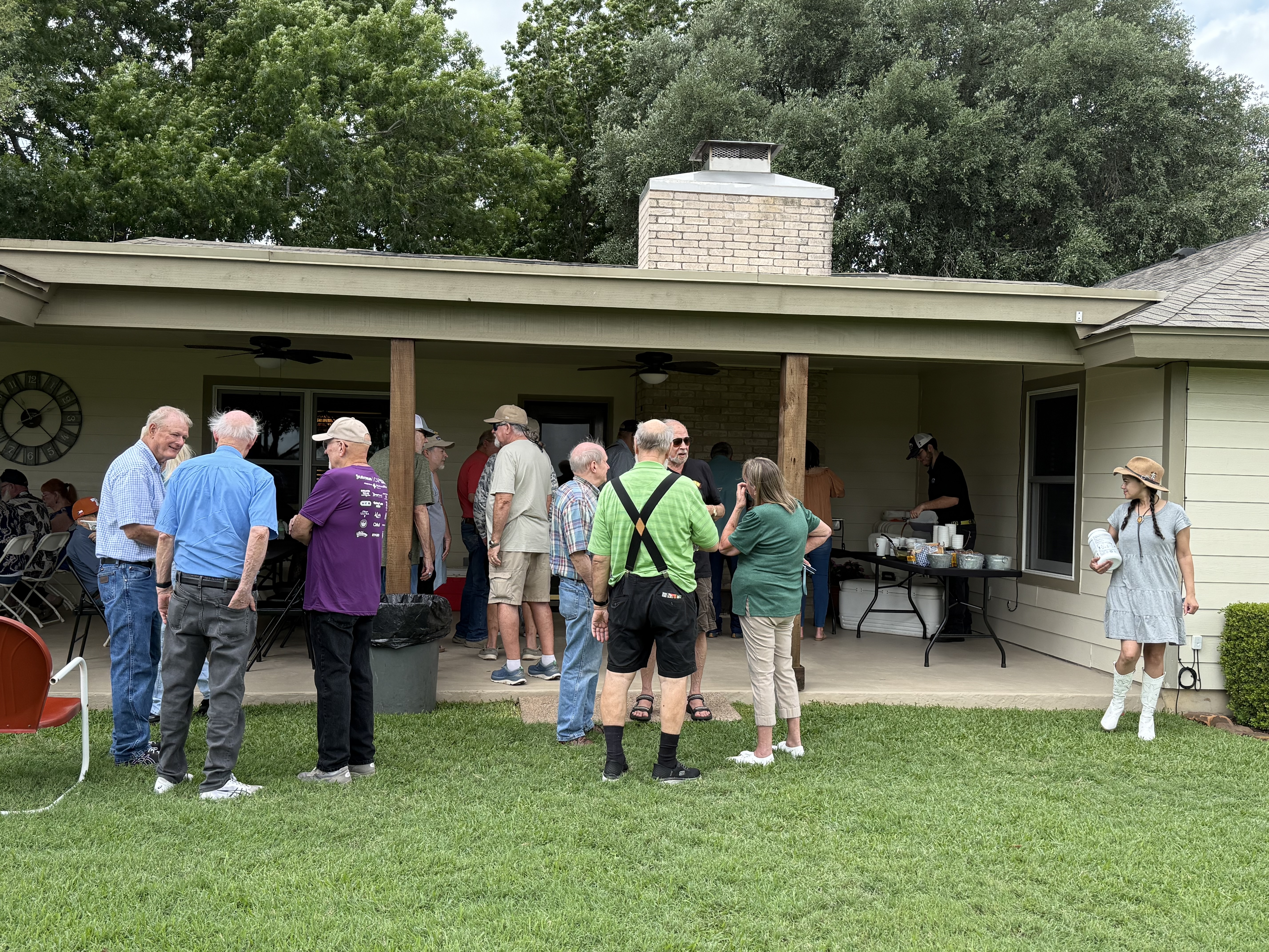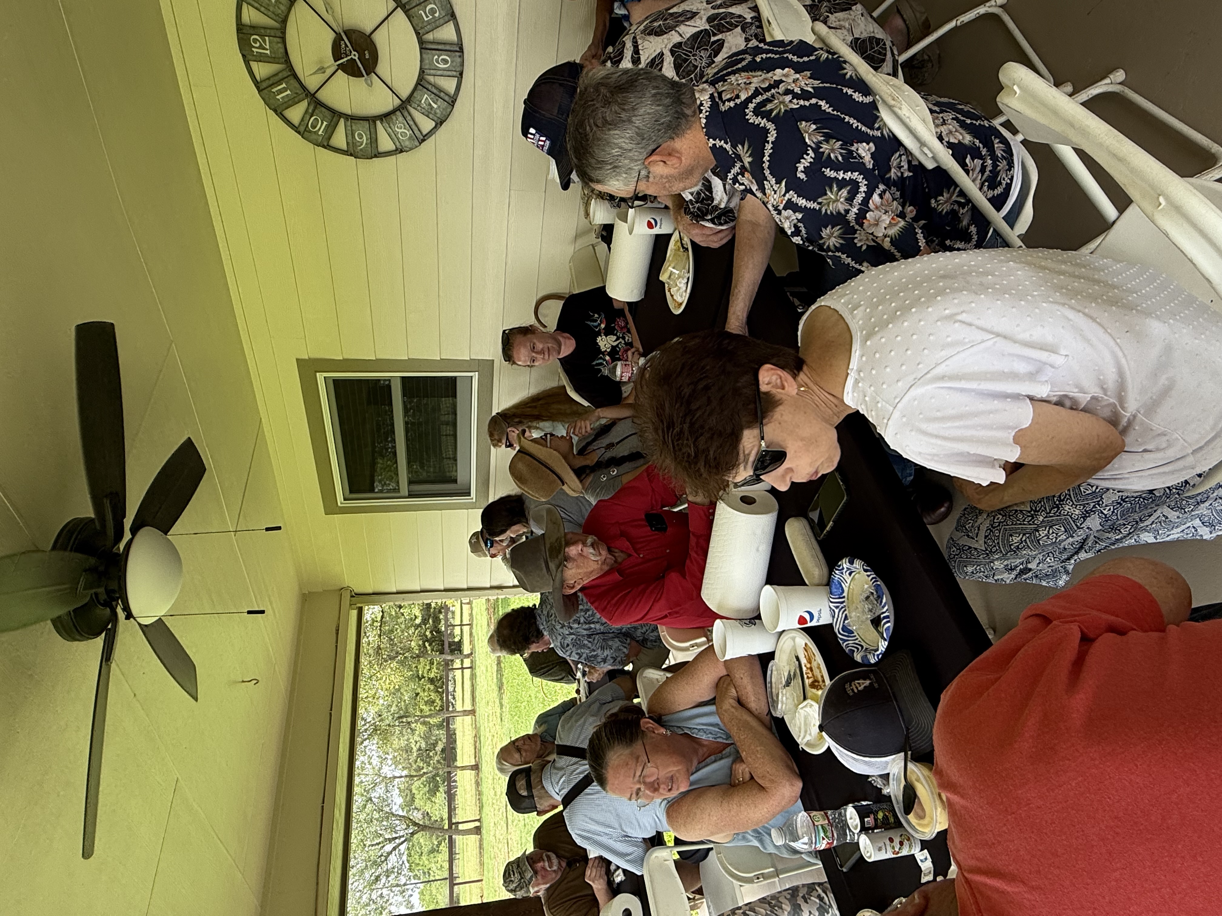 Physics Shop Reunion April 26, 2025, Home of Allan Schroeder and DeeDee Skidmore, Elgin, TX Front Row: Nanette Carter, Donnie Cannon, Judy Kilgore, John Keto, John Kerrigan, Harry Swinney, Jesse Martinez, Mary Franklin, Carol Monett, Terry Cole |