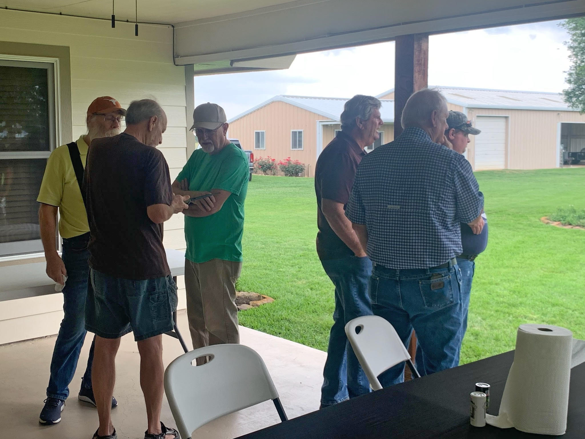 Physics Shop Reunion April 29, 2023, Home of Allan Schroeder and DeeDee Skidmore, Elgin, TX Front Row, L to R: Carol Monette, Jessie Trevino, Peter Riley, Allan Schroeder, Austin Gleeson, Terry Cole, Randy Deavers, Gary Thomas, Sandy Campbell Second Row: Marek Proga, Jay Campbell, Bill Goss, Richard Goodwin, Danny Boyd, Kenny Schneider, Flint Fisher, Keith Carter, Herb Boehl, Harold Williamson, Mel Oakes Back Row: George Sandefur |