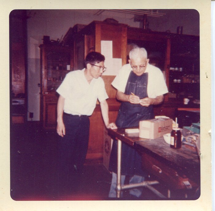 Robert Brandt at left. Robert Brandt and Dr. Teruo Nishitake (Hughes postdoc) at right. Photo from Darrell Hughes files.