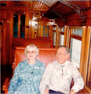 Following retirement, Guenther and Edna traveled extensively, including China and New Zealand where they participated in a favorite activity, square dancing. Guenther did not like to fly so they went by ship. They are shown aboard the Kingston Flyer Steam train which operated between Kingston and Fairlight on the South Island. The rolling stock used on the line consists of seven wooden passenger carriages that date as far back as 1898. Unfortunately the Kingston Flyer is no longer in operation.