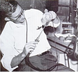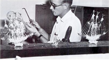 Geza Dombi was an early glassblower for physics department from 1955-1963. From a 1966 National Center for Atmospheric Research (NCAR) newsletter, “Geza has a working knowledge of the operating principles of high- vacuum systems. He is experienced in making and assembling pumps, cold traps, valves, gages, and other components that go into such systems.