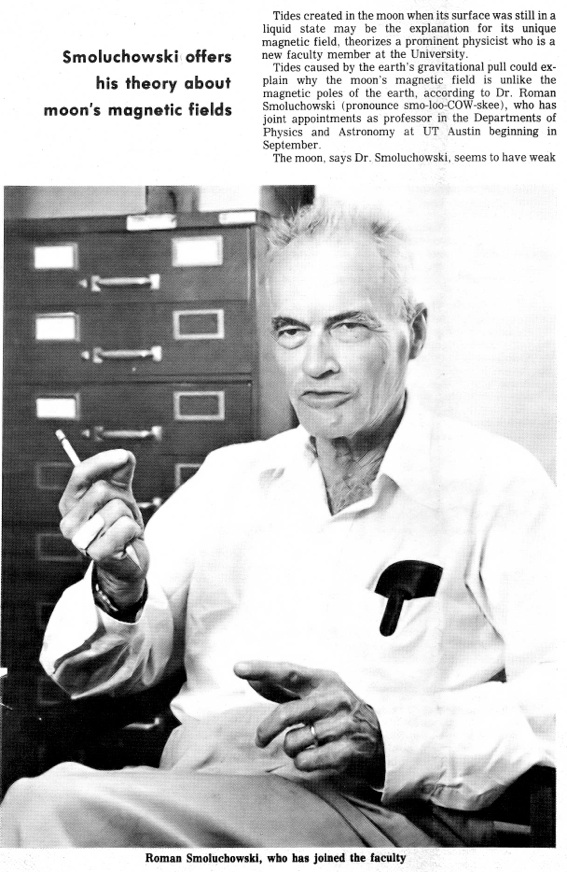 Dr. Smoluchowski published more than 300 scholarly articles and served on advisory boards for the Department of Defense and the Oak Ridge National Laboratory. He was involved in studying the structure of the moon's surface during the Apollo lunar missions.