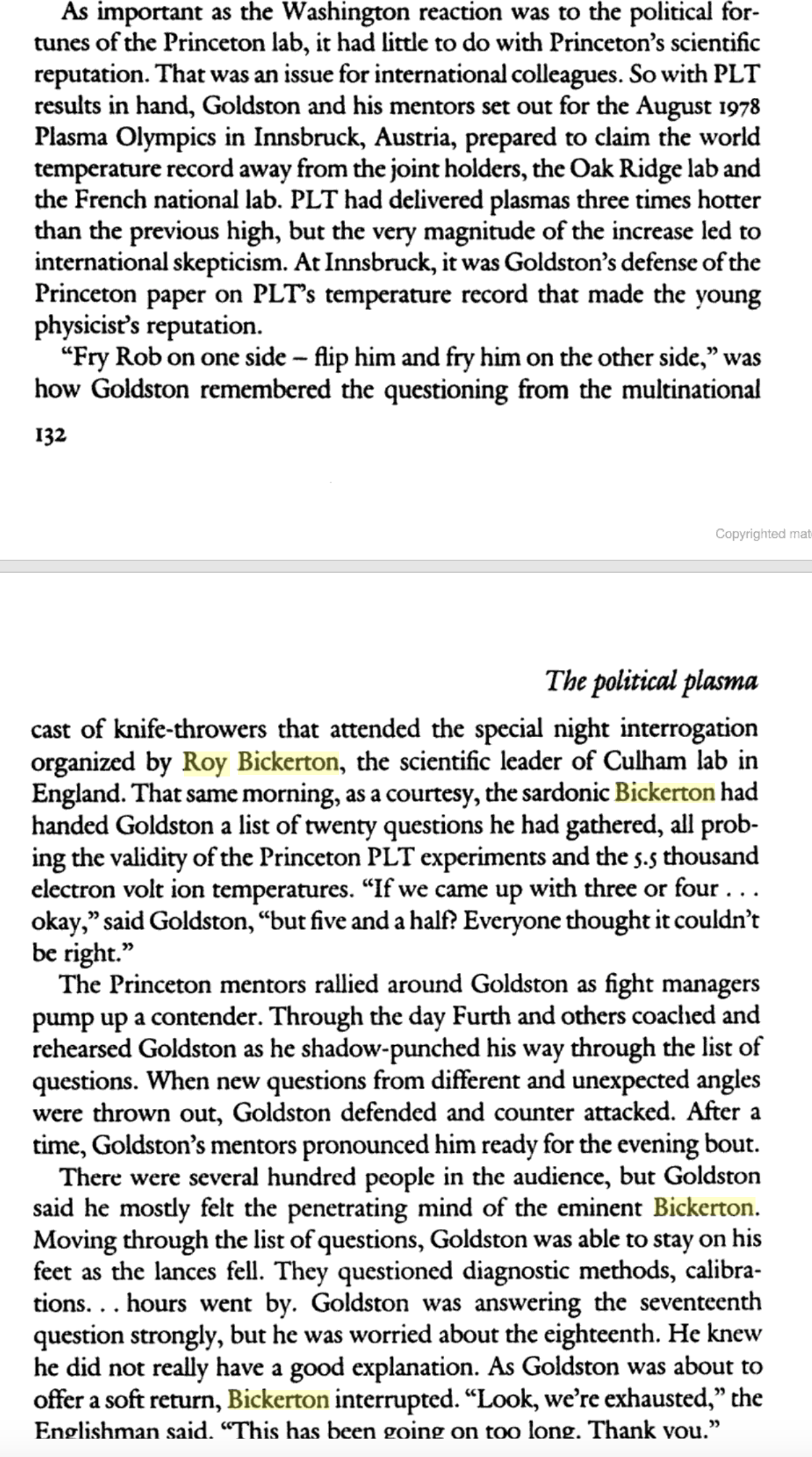 It conveys the respect the fusion community had for Bickerton. The high tempertures measured in the Princeton Large Torus (PLT) was in question.